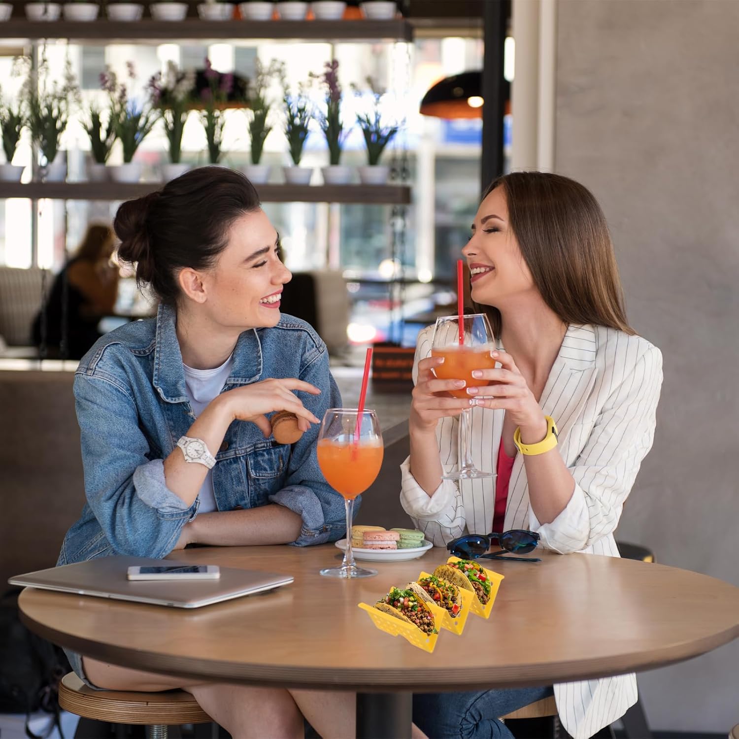 uxcell 8 Pcs Taco Holder Stand, Plastic Taco Plates Hold Up to 3 Tacos, Hollow Carved Taco Shell Holder, Dishwasher Microwave Safe, Yellow