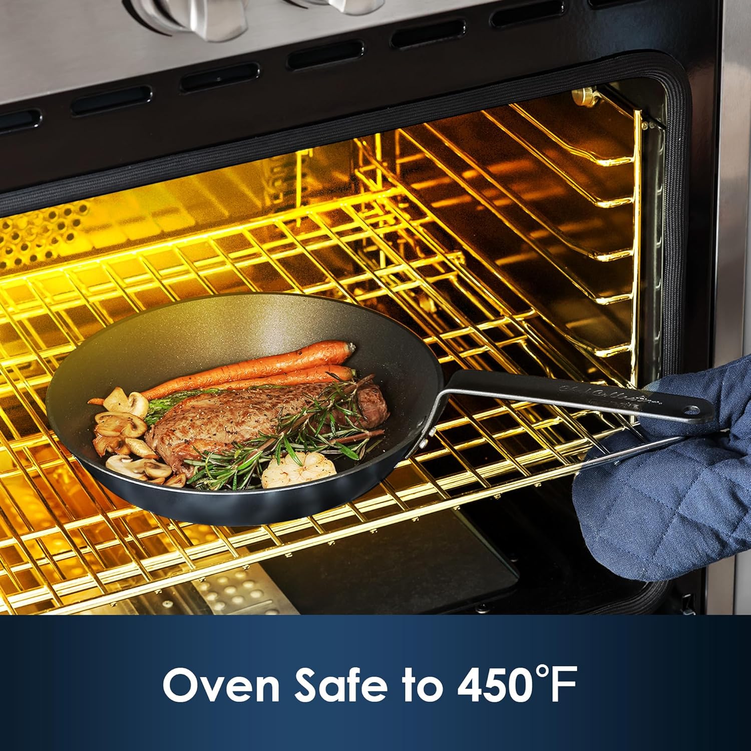 - Scratch-Resistant Anodized Exterior: The anodized exterior of the pan is 10X more long-lasting and resistant to scratches than traditional cookware. No more worrying about the coating peeling or chipping, even with daily use.