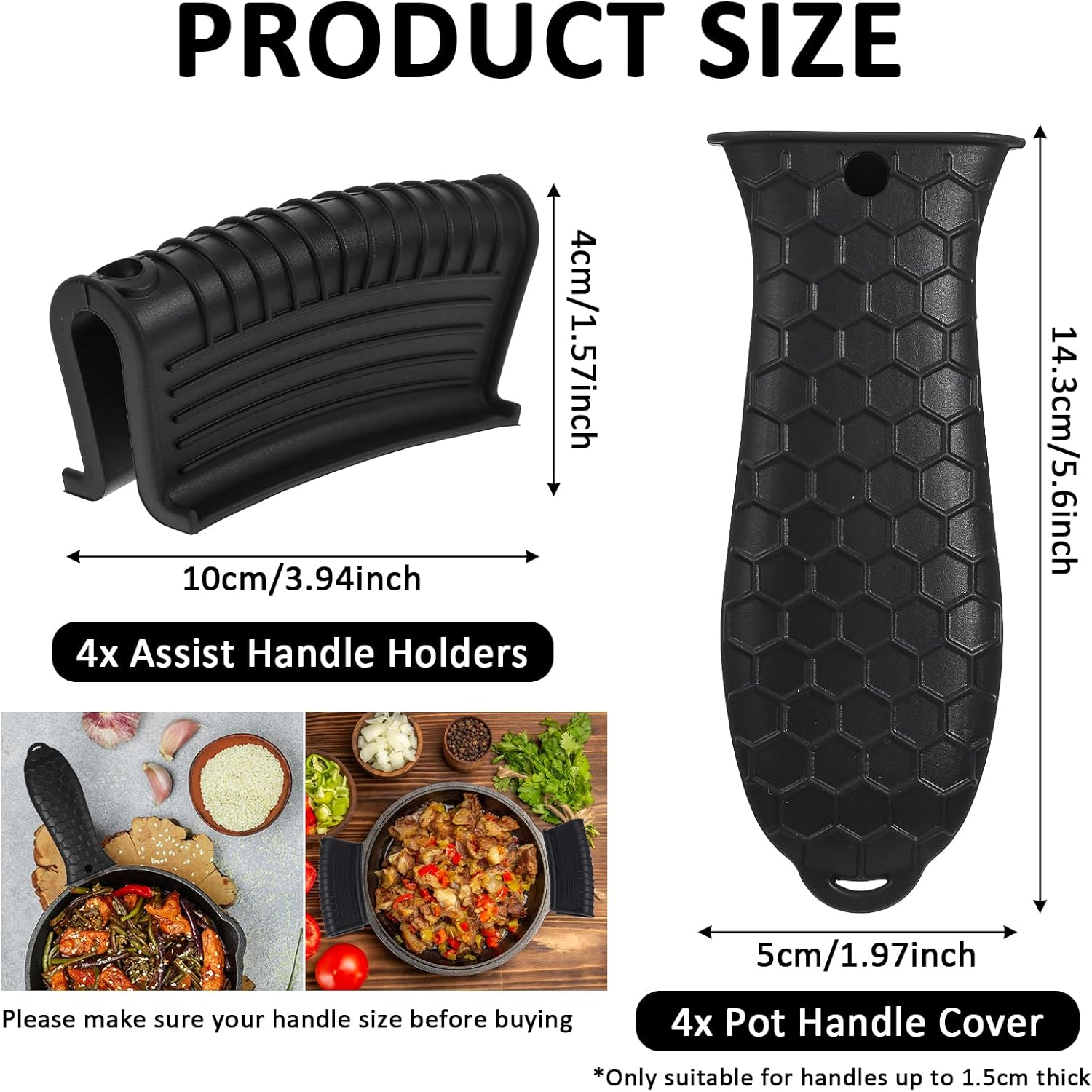 - Package Quantity: Each pack includes 4 silicone hot handle covers and 4 silicone assist handle grips in black, providing enough for daily use, replacement, and sharing.