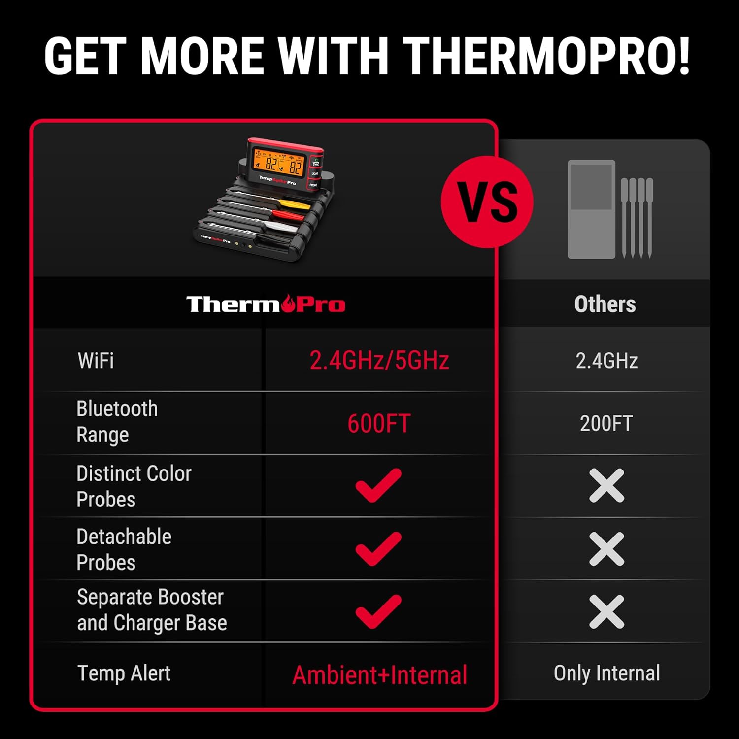 - 【Perfect Gifts】TempSpike Pro by ThermoPro digital meat thermometers are delivered in an elegant box, making it the ideal grilling gifts for men or women, dad or friends, husband or wife, also the must-have gift for for BBQ lovers, chefs, & foodies!