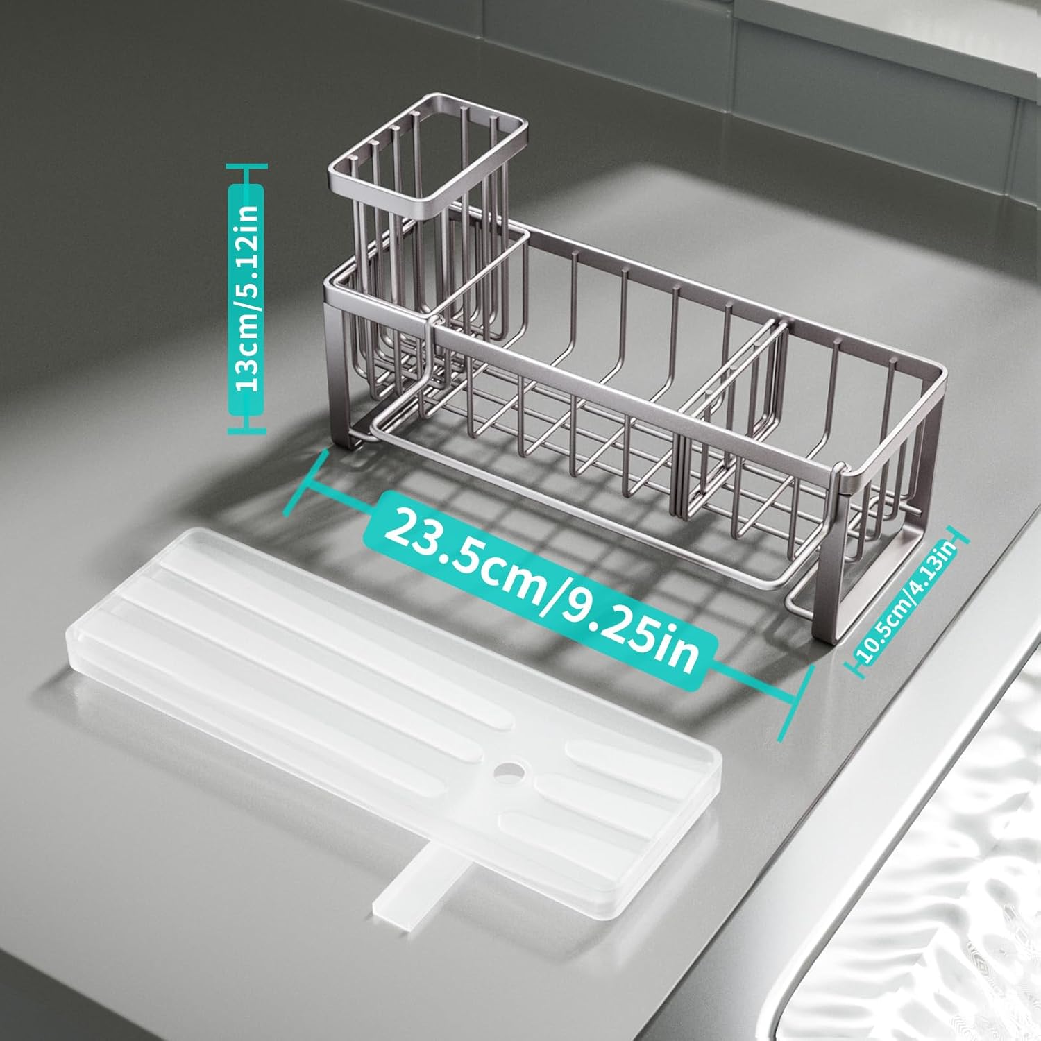 - [Reasonable Size & Support]: The size of our sink organizer is 9.06*3.23*5 inches. Our sponge caddy for kitchen sink can meet your daily needs well. If you are not satisfied with this sink caddy kitchen sink organizer, please reach out to us