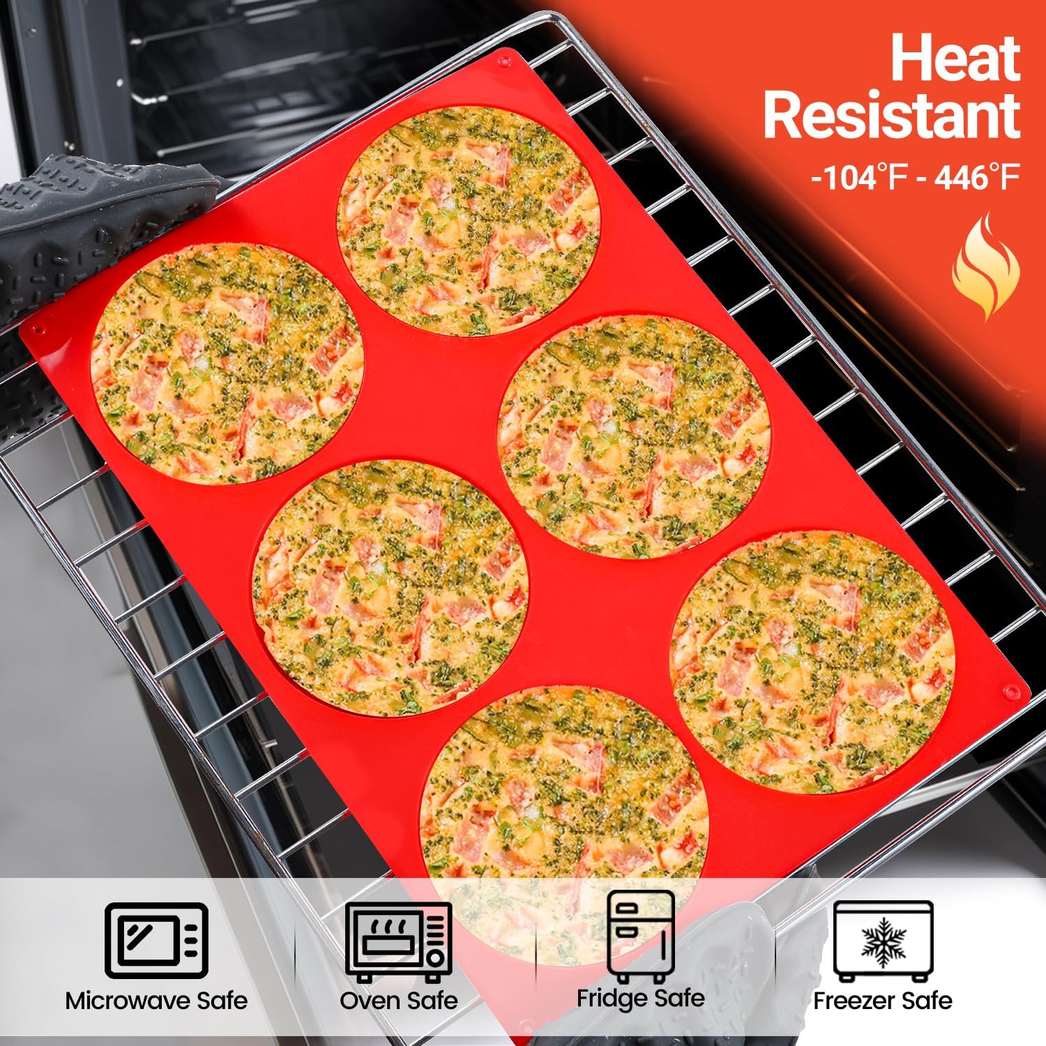 - Safety and Healthy: Safe for oven, microwave, dishwasher, fridge, freezer. Applicable temperature range: -104℉to 446℉(-40 ℃ to 230 ℃), these large muffin top pans are impermeable, practicality and durability