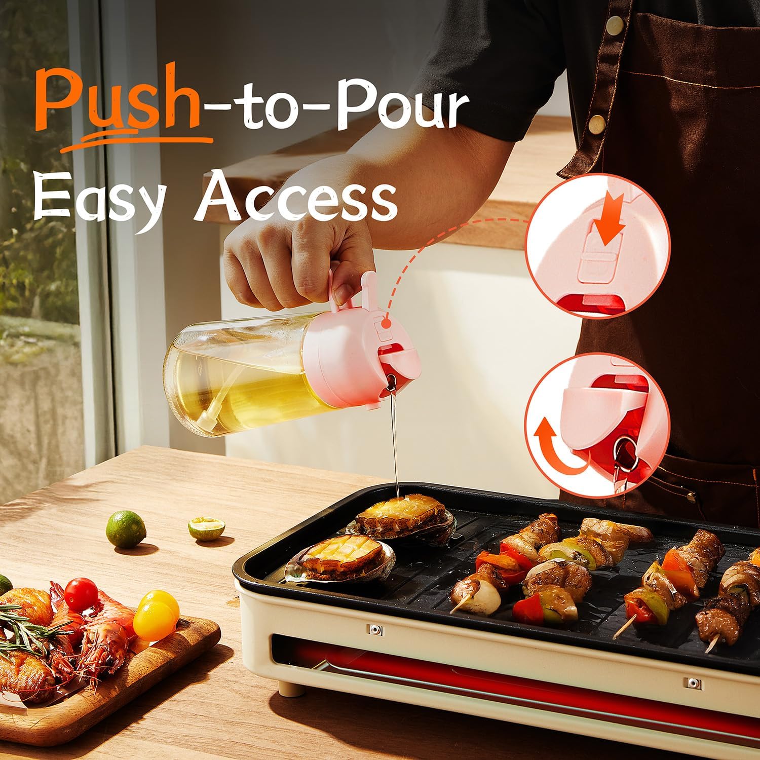 - Precision Spray Nozzle: The olive oil spray bottle features a nozzle that delivers a fine mist or steady stream, offering precise control. It’s perfect for drizzling or spraying, making it an essential oil bottles for kitchen