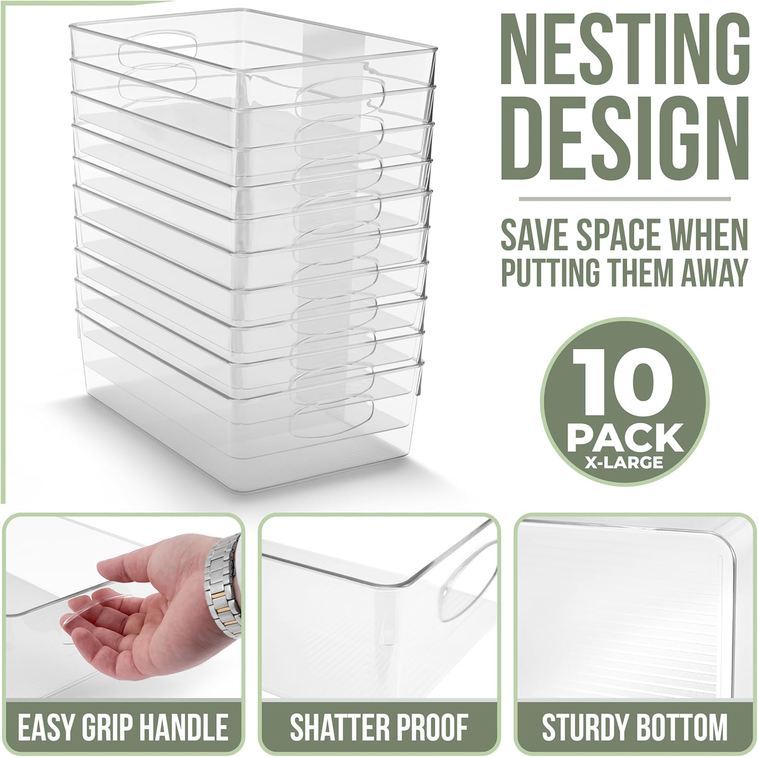 Sorbus 10-Pack XL Clear Plastic Organizing Bins – Clear Bins for Organizing, Refrigerator Organizers, Fridge Organizer, Pantry Storage, Kitchen Organizer, and Pantry Organizers and Storage Bins