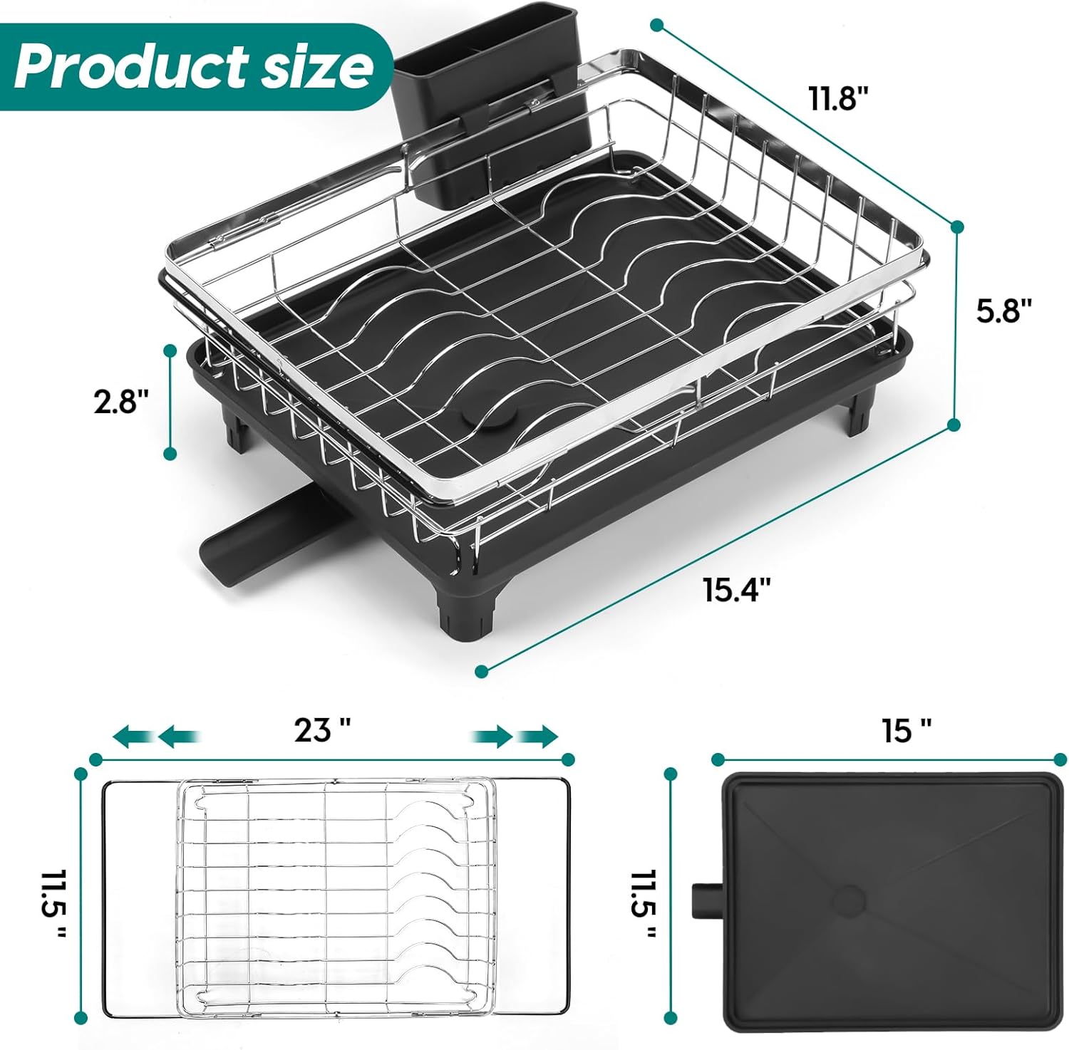 MERRYBOX Sink Dish Drying Rack, Expandable Stainless Steel Dish Drying Rack in Sink/Over The Sink with Large Cutlery Holder for Kitchen Counter(Adjustable 15.4" to 23" cm)