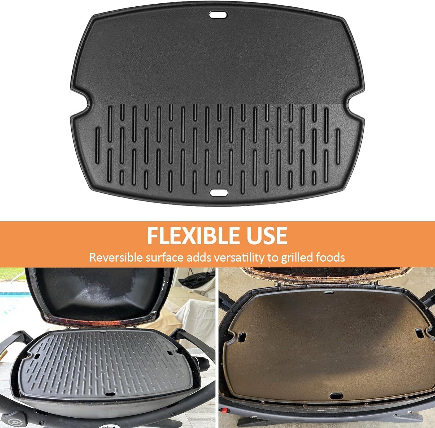 - Compatibility: Cast iron griddle fits Weber Q200 Q220 Q240 Q2000 Q2200 Q2400 Q2800 series gas grills. Replacement for Weber 7583 7645 original part number grill griddle. Compatible with Weber 394001 396000 396001 53060001 54060001 54060301 55020001 566001 566002 566801 567798 592001 616002 models