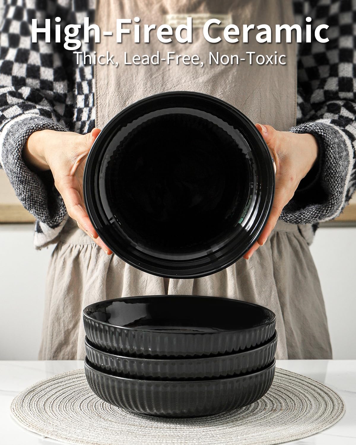 - Space Saving: Pasta bowls are forged in 1000°C heat, ensuring superior durability and heat resistance. Pasta bowls set of 4 can be conveniently stackable. Hasense pasta bowls save cabinet space and are perfect for modern kitchens, providing long-lasting use