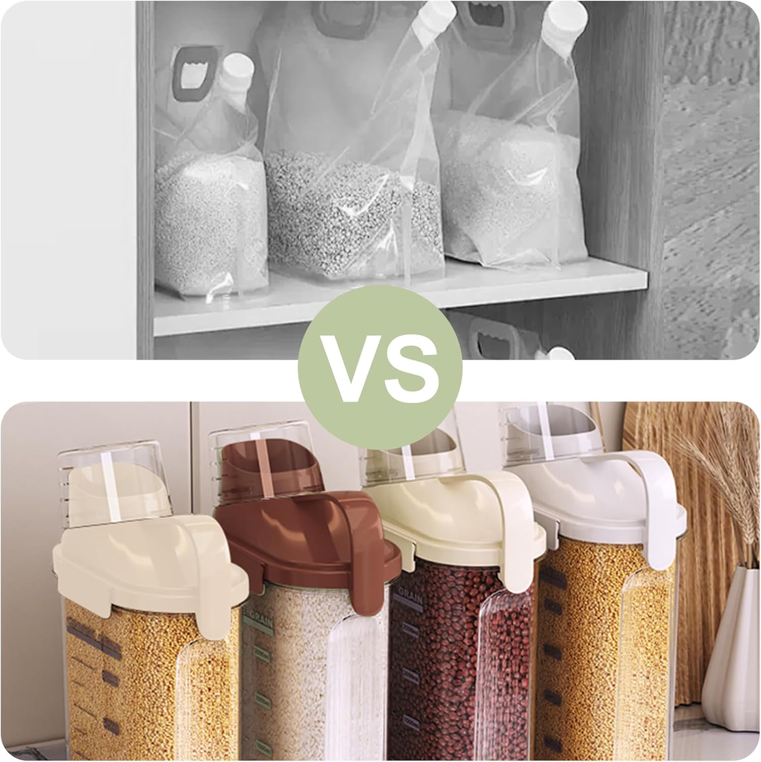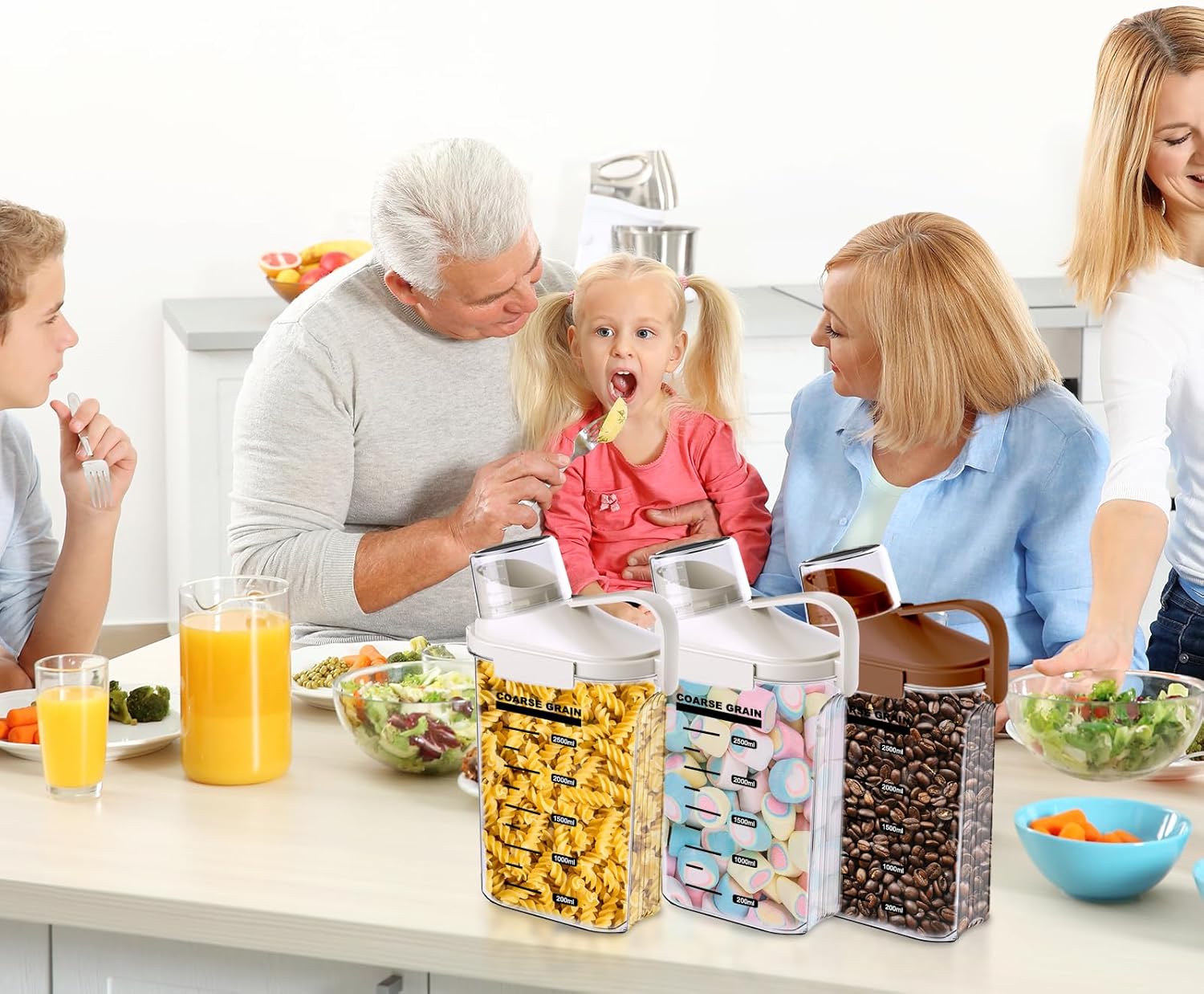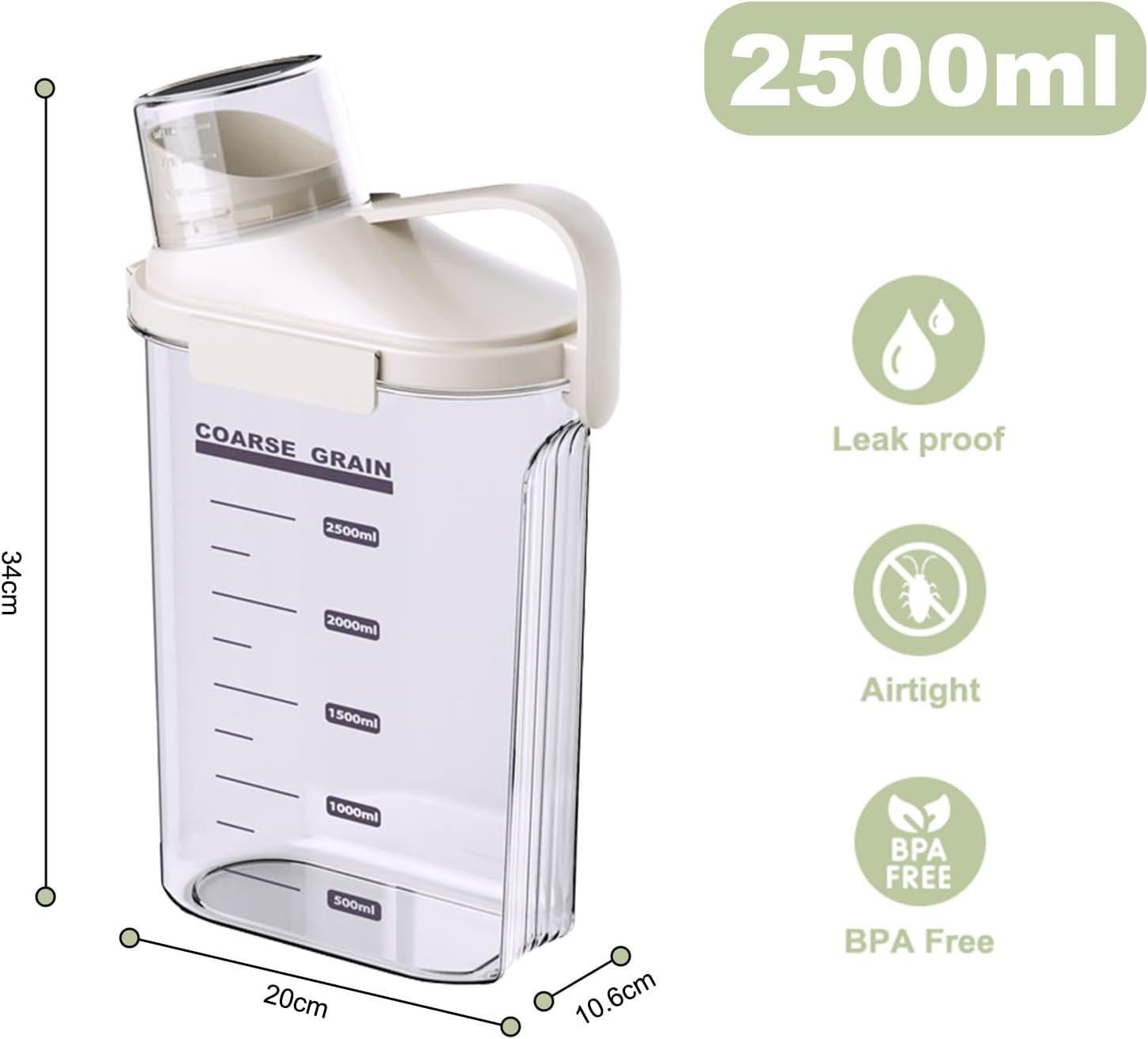 - Bpa Free, Food Grade Plastic:Crafted from high-quality, food grade materials, these clear food storage containers are designed to be durable and safe for storing dry products. ATTENTION: PACKAGE INCLUDES: 3 x 2500ML CEREAL DISPENSER(2 White+1 Brown).