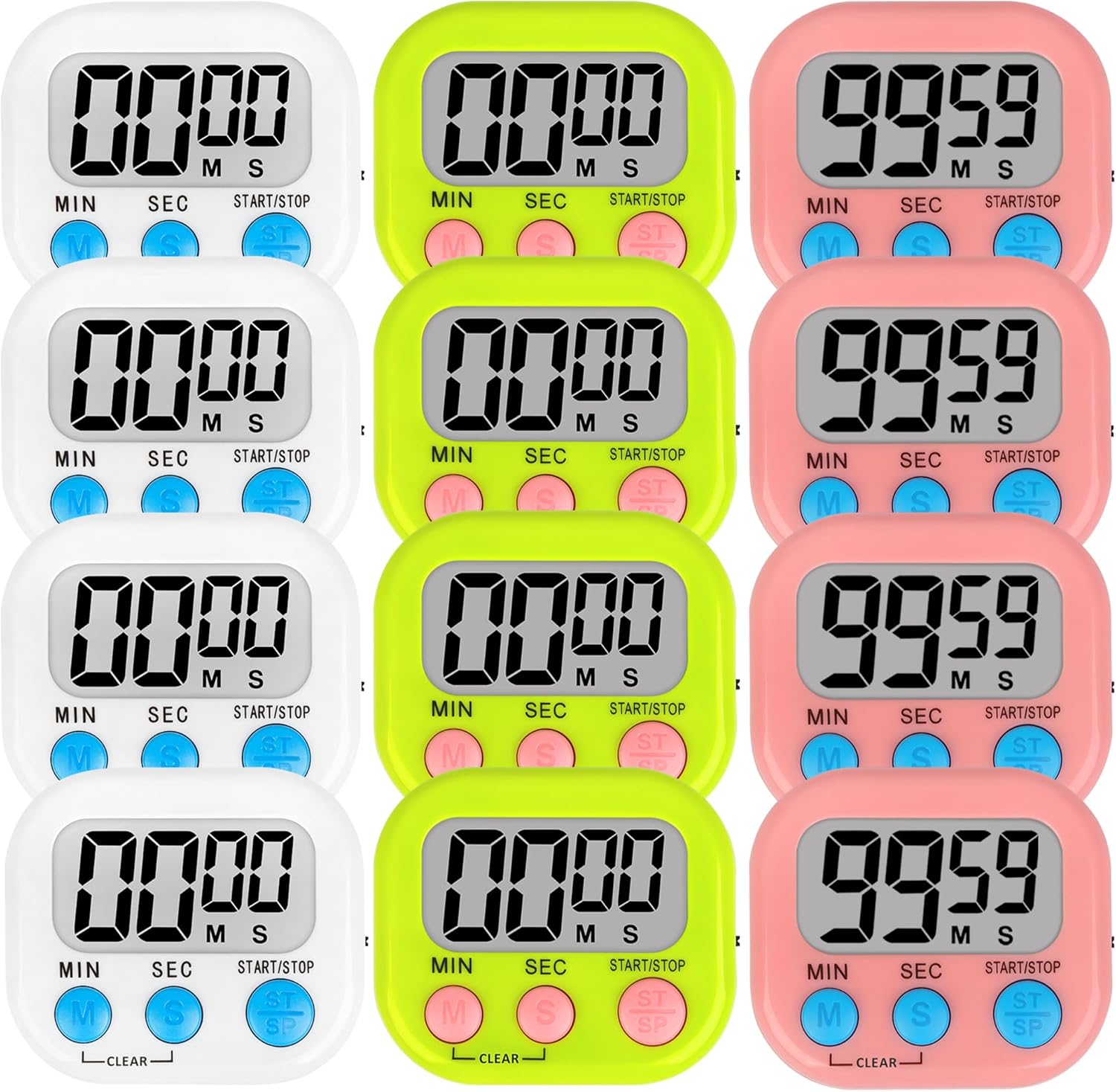 ZILLEEN 12 Pack Kitchen Timers for Cooking Digital Classroom Timers for Kids Teachers White Green Pink