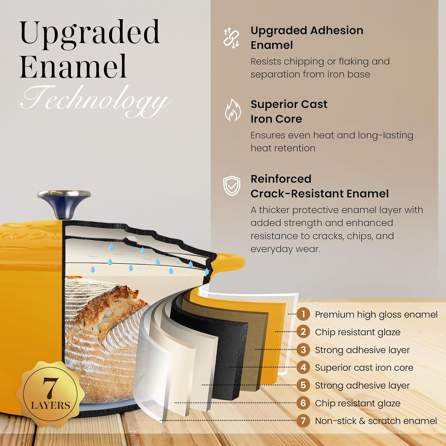 Nuovva Enamelled Cast Iron Dutch Oven Pot with Lid 6.4 Quart Non Stick Casserole Pot – Heavy Duty & Oven Safe up to 500° F for Bread Baking, Braising, Stews, Roasting – 28cm Yellow