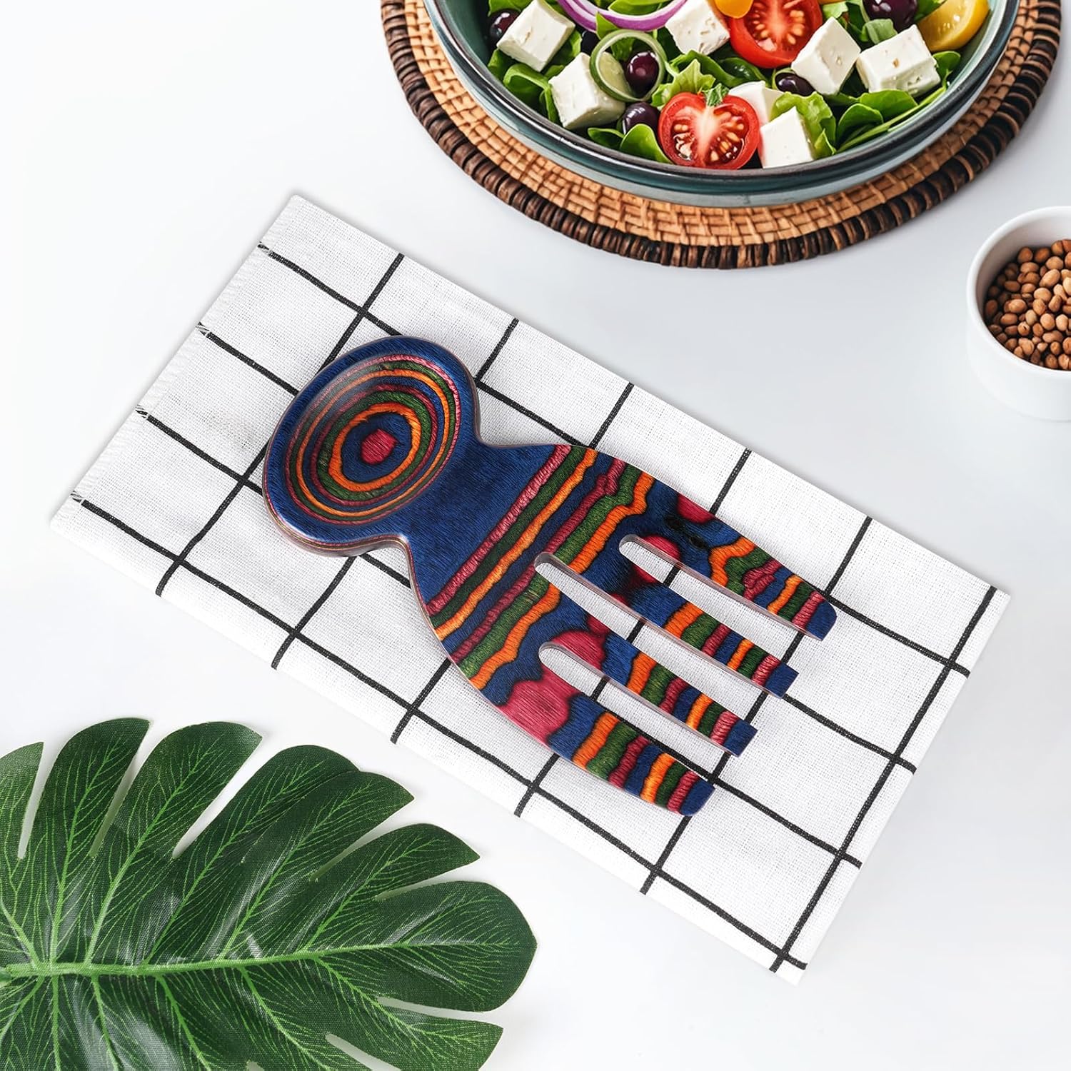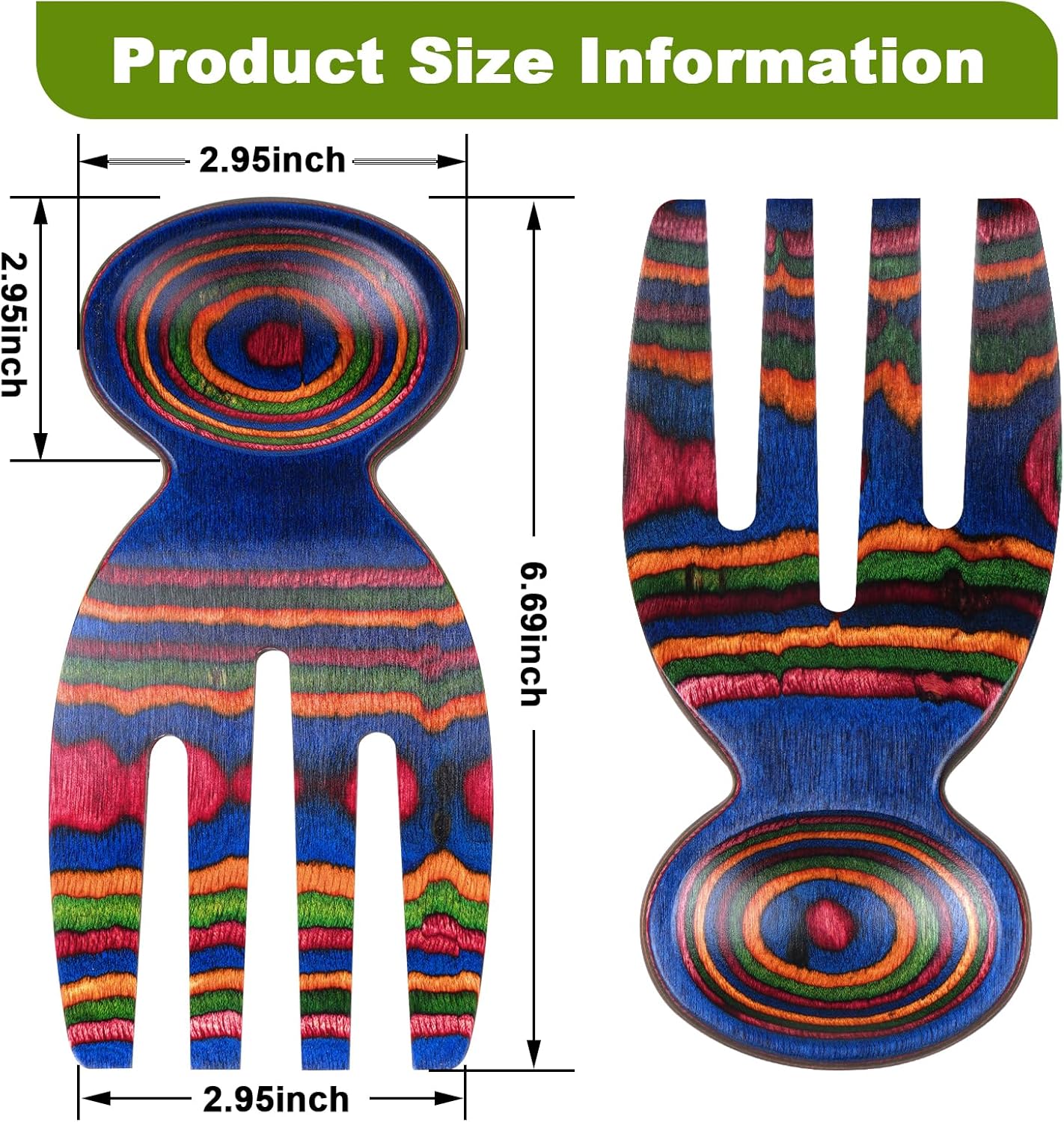 - ELEVATE YOUR SERVING EXPERIENCE: Impress your guests with our vibrant, colorful teak wood salad hands, crafted to add elegance and functionality to any gathering. These unique salad serving utensils bring a stylish touch to every meal.