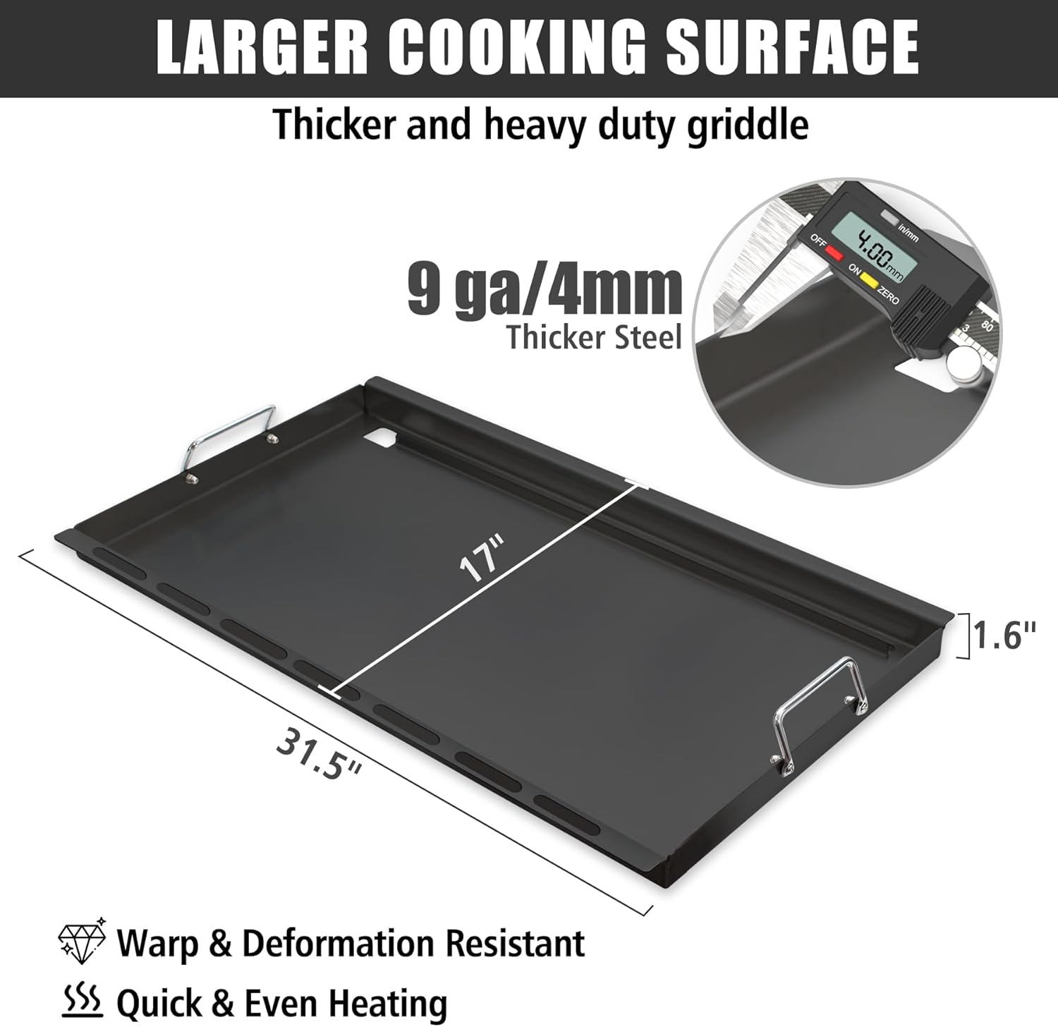 - Versatile Griddle for Every Meal: Transform your Spirit grill into a full-sized griddle in seconds. Perfect for pancakes, eggs, fajitas, bacon, burgers, and more! The large cooking surface (17in D x 31.5in W) lets you cook multiple items simultaneously, making it ideal for family gatherings, parties, or meal prep.