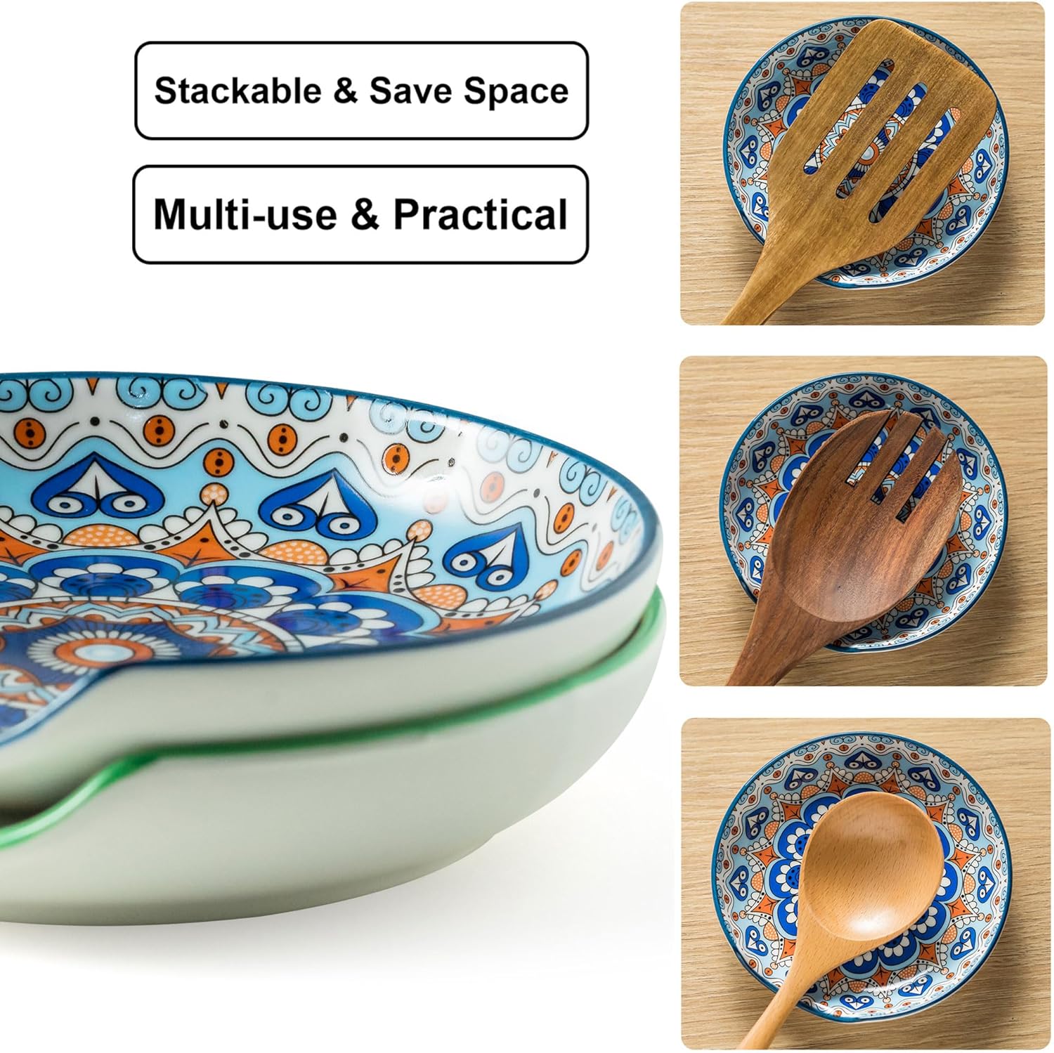 - Unique Design: Featuring unique Bohemian style design and exquisite pattern and color matching, exuding a charming and delightful aura. Use a countertop spoon rest to add a touch of color to your dining table, making your dining space bright