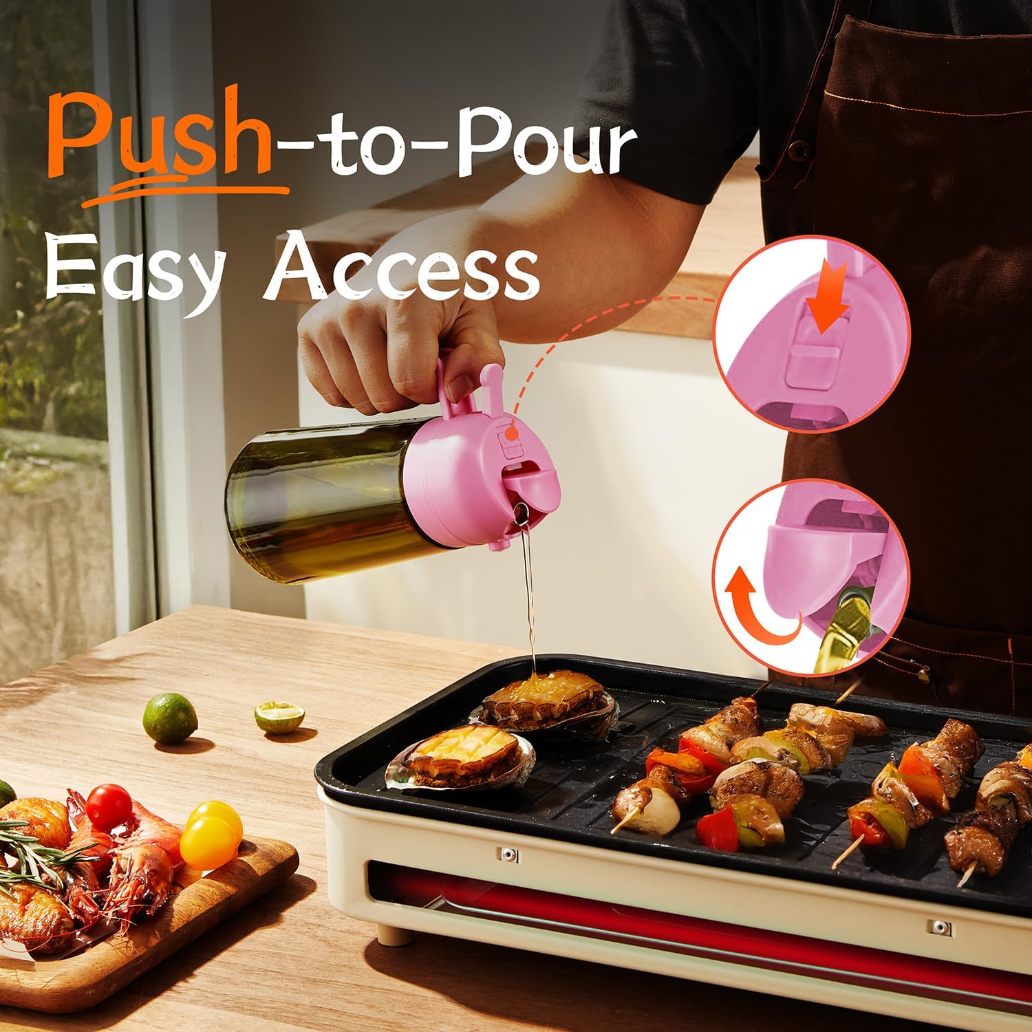 - Innovative Spray Nozzle Design: Delivers precise control—quick presses release a fine mist, while slow presses provide a steady stream. Whether you're preparing meals in the kitchen or barbecuing outdoors, this reliable cooking oil sprayer doubles as one of your must-have grilling accessories