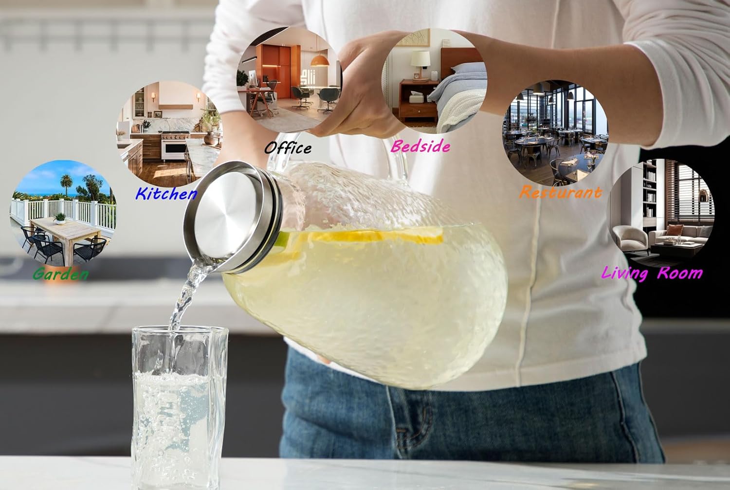 - [Heat-Resistant Borosilicate Glass] The jug is made of lead-free borosilicate glass. It has a large capacity of 110 ounces which helps serve families or guests.