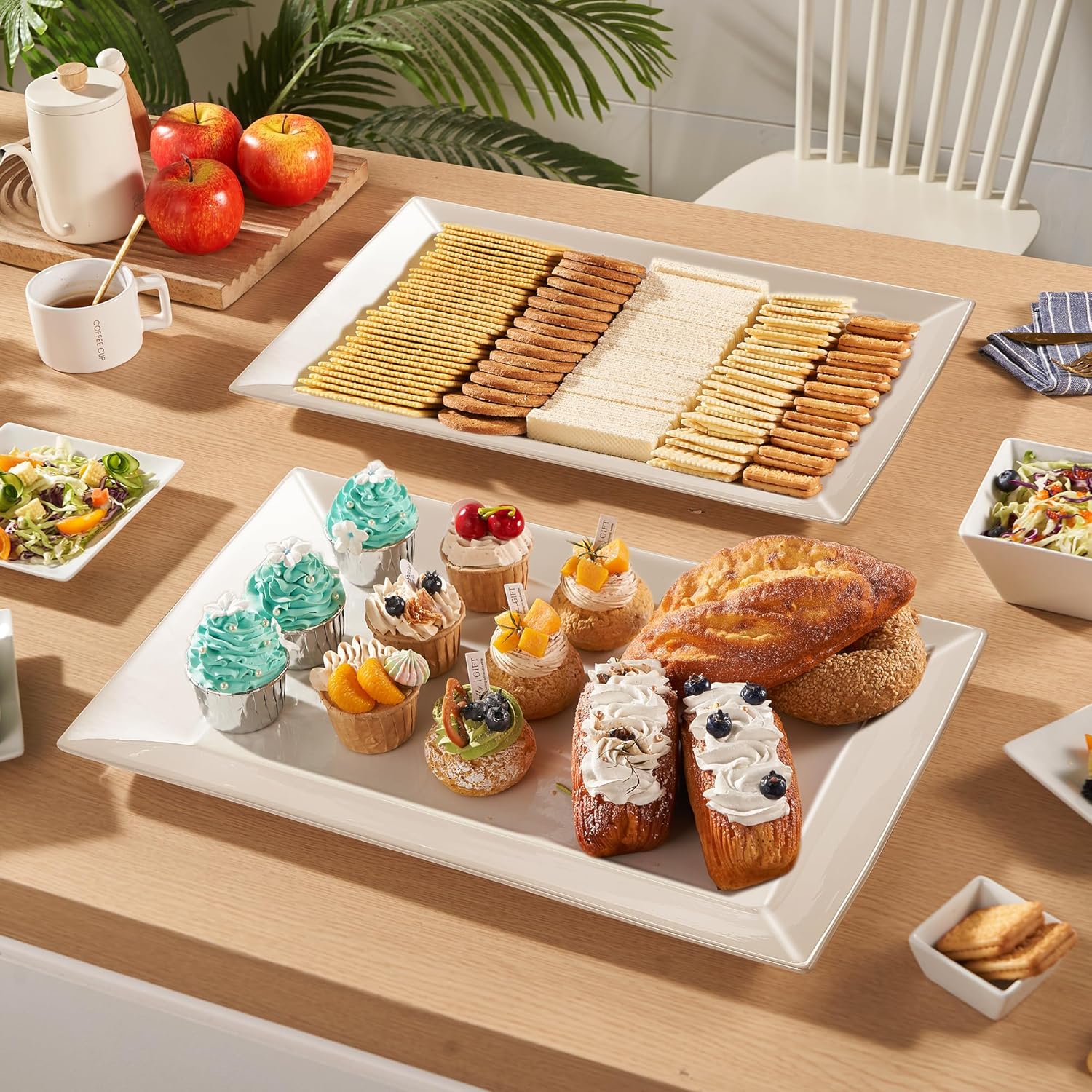 - 【THOUGHTFUL GIFT FOR ANY OCCASION】These large white rectangular serving platters make a thoughtful gift for hosts, newlyweds, or anyone who loves to entertain. Their timeless design complements any kitchen or dining decor, making them a perfect addition to celebrations like weddings, birthday parties, Thanksgiving, Christmas, housewarmings, or anniversaries.
