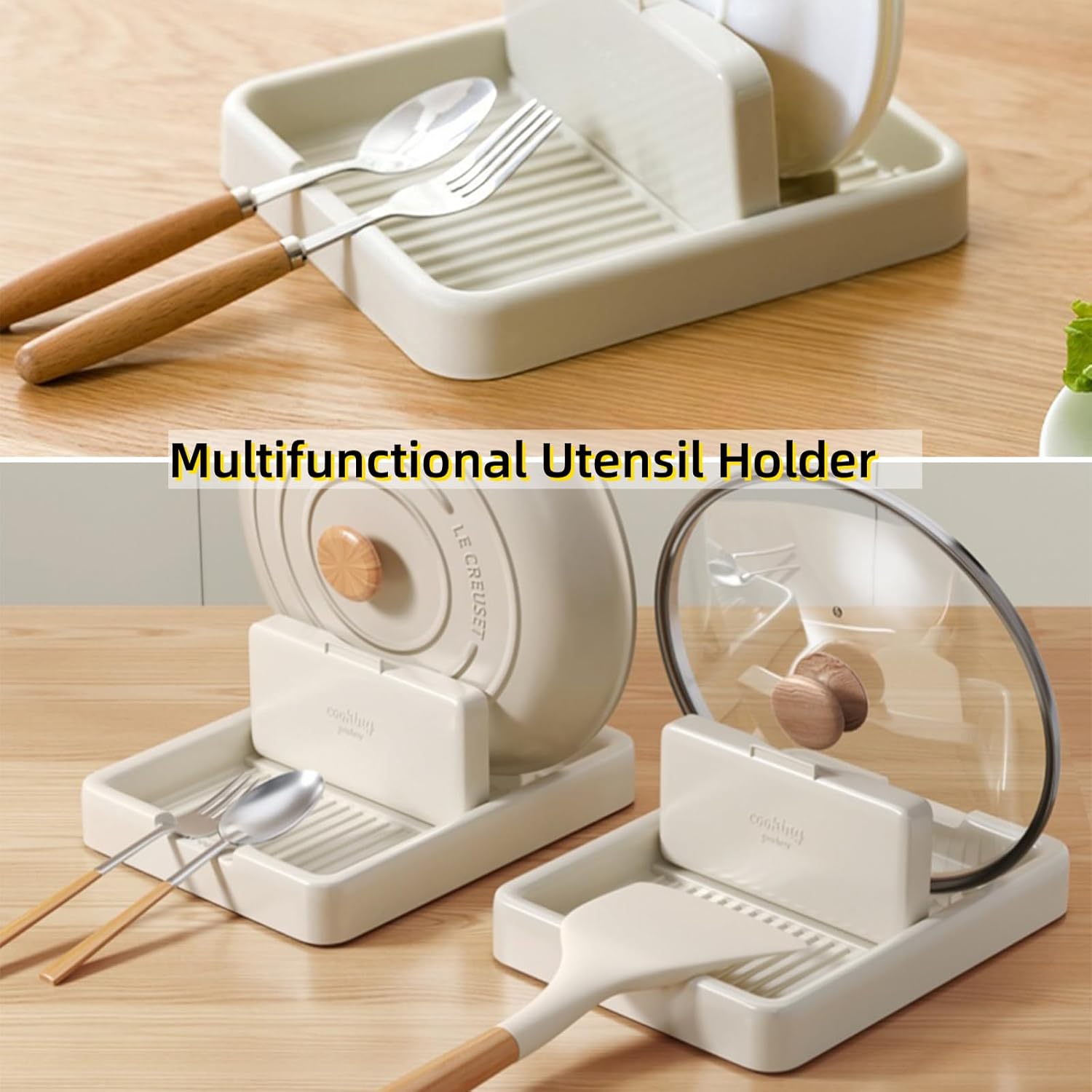 - 【Multi-Functional Design】Features a foldable lid compartment that simultaneously holds 2 cooking tools + 1 pot lid while cooking. When folded, transforms into a compact holder for coffee spoons or eating utensils - perfect for countertop organization.