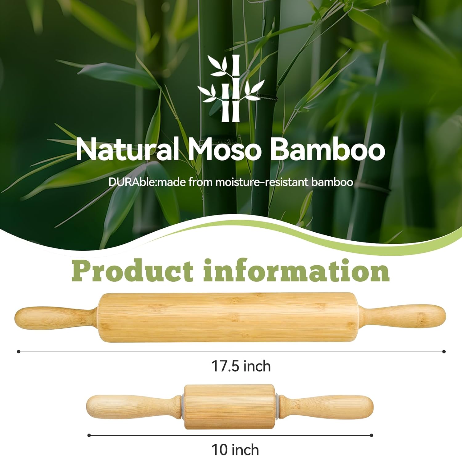 2 Pack(10 inch &17.5 inch) Wooden Rolling Pin for Baking - Long Dough Roller for All Baking Needs
