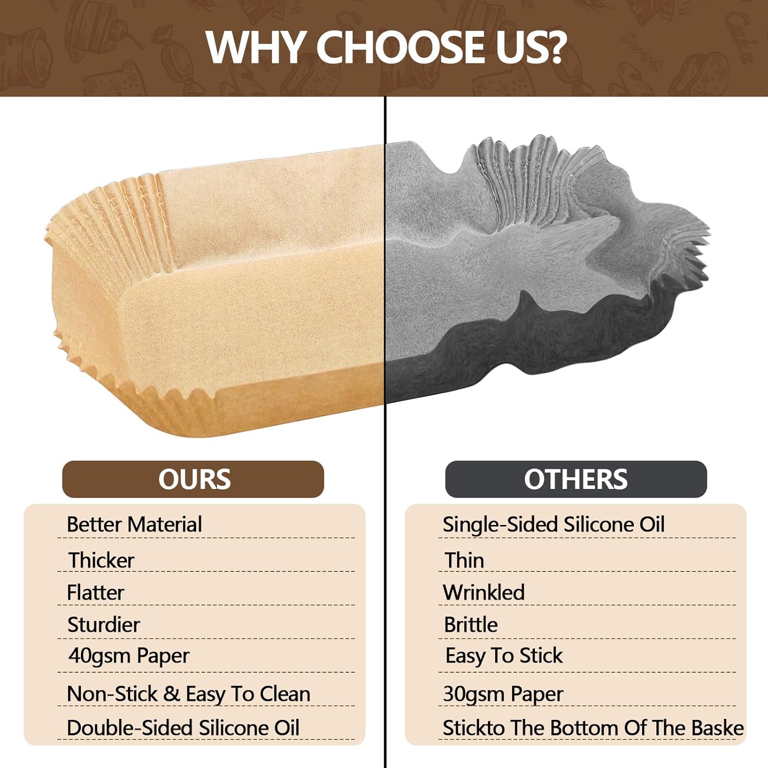 - 【Food grade air fryer paper liners】Made from food-grade parchment, our Ninja air fryer accessories are waterproof and heat resistant. They can withstand temperatures up to 230°C (450°F) without affecting the taste of your food.