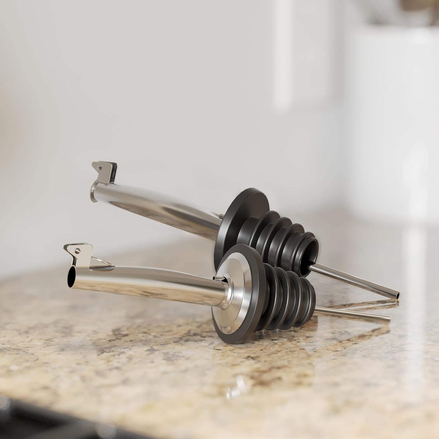 New England Stories Kitchen Cooking Oil Dispenser Set, Olive Oil and Vinegar Bottles, Soy Sauce Dispenser - 6 Pieces, Silver, Durable & Stylish Design
