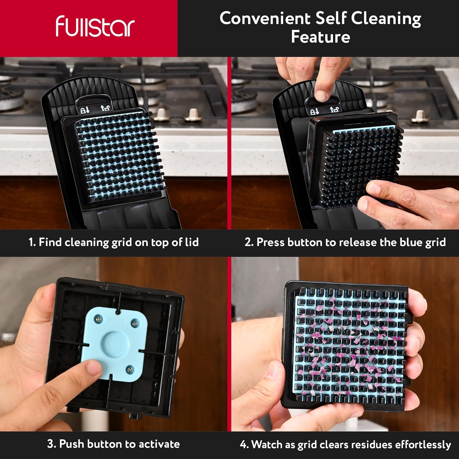 - Innovative Cleaning Pusher Grid - Set yourself apart from the rest with our innovative cleaning pusher grid. This addition simplifies cleaning, ensuring that food remnants are easily removed from the blades.