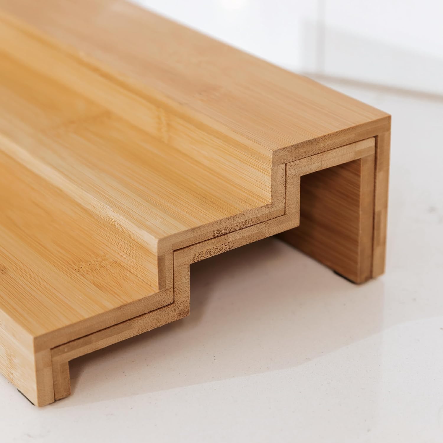 - More Than a Spice Rack: Perfect for toiletries, cosmetics, or office supplies, this bamboo pantry organizer fits seamlessly into any space. Whether as a kitchen cabinet organizer or a bathroom shelf, it’s both versatile and stylish