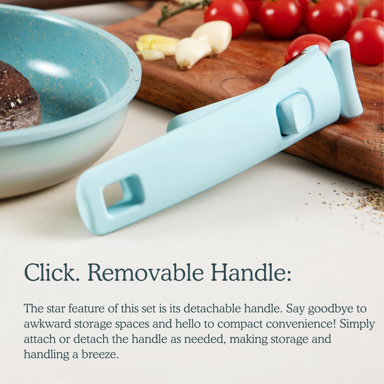 BytheTable Ombré Ceramic Titanium Non-Toxic, Nonstick Cookware Set 8-Piece Modular System with Removable Handle and Magnetic Lid, Magnetic Spatula, Eco-Friendly, Oven & Dishwasher Safe (Cataline Blue)