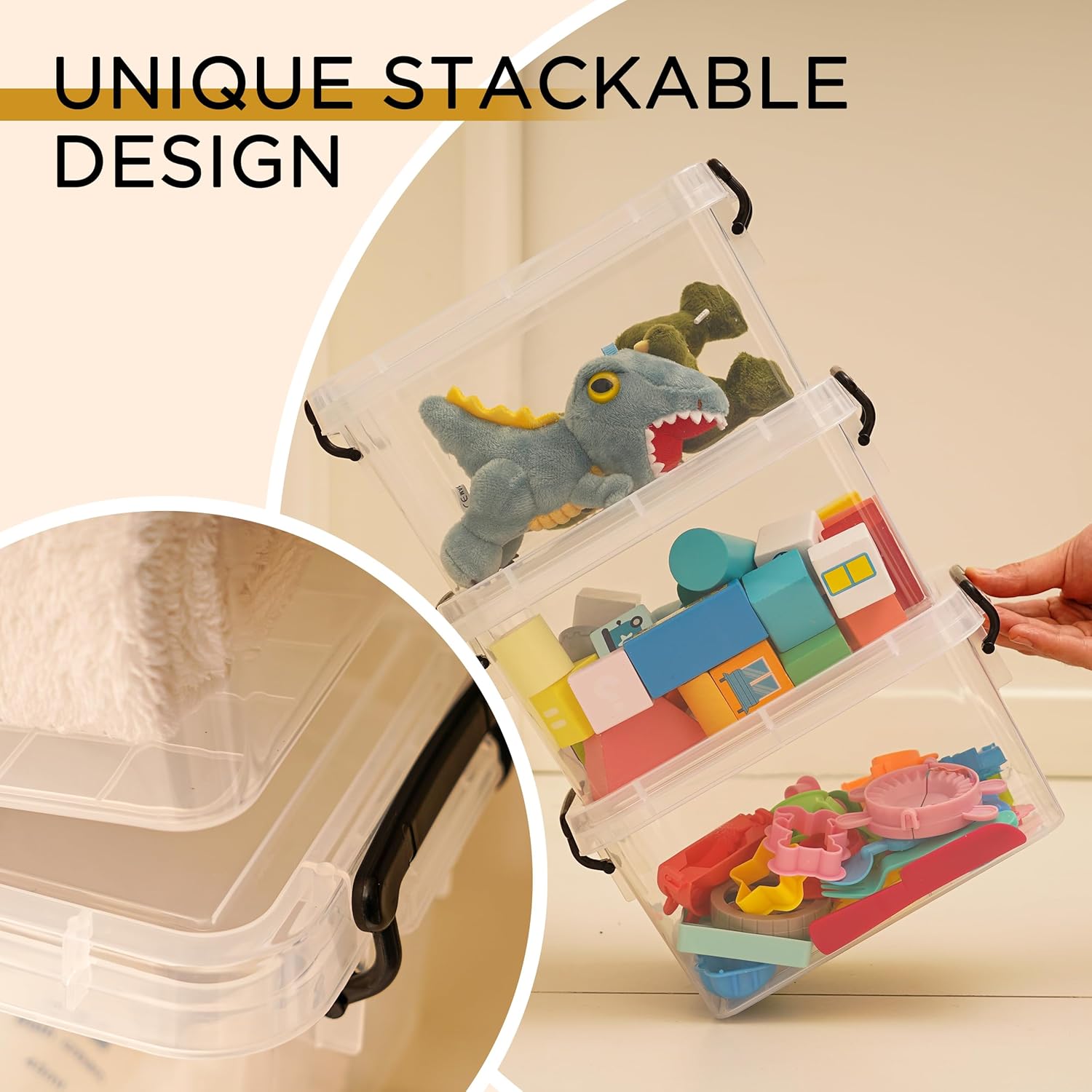 ITYLIFE CITYLIFE 6 Packs 3.5 QT Small Storage Bins with Black Handle Clear Plastic Bins with Reinforce Bottom Stackable Storage Containers for Organizing Art Supply, Craft Stuff, Medicine, Small Toys