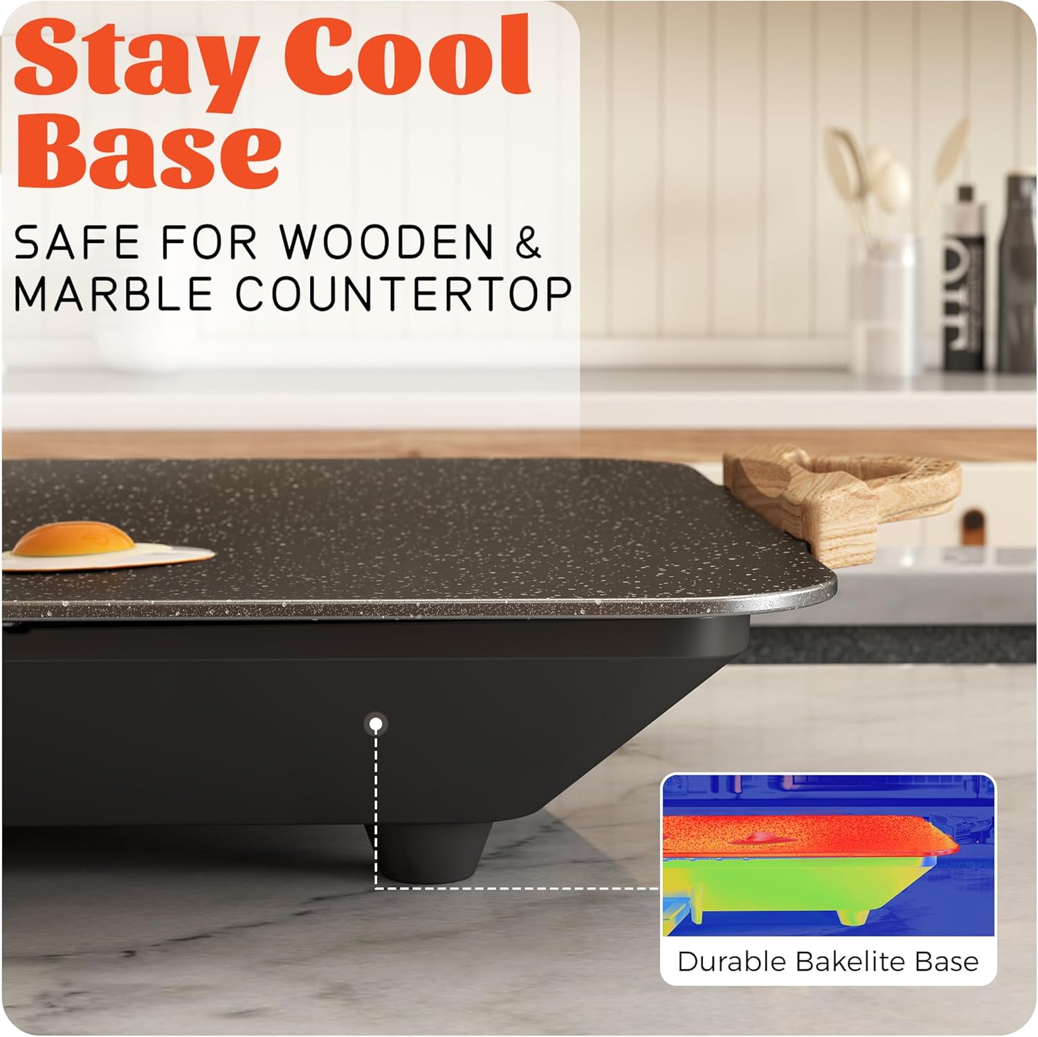 - 3 Years Durable Nonstick: Ultimate Granite Nonstick Coating,Experience 8x more durable than standard coatings *vs typical ceramic electric griddles.