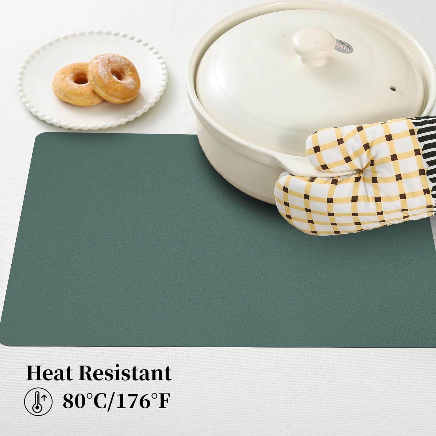 Silicone Placemats Set of 4,Waterproof Mats,Green Silicone Placemats for Dining Table, Reusable Mat,Non Skid Placemats,Easy to Clean, Dustproof,Perfect for Indoor Dining by Siliconty (Green)