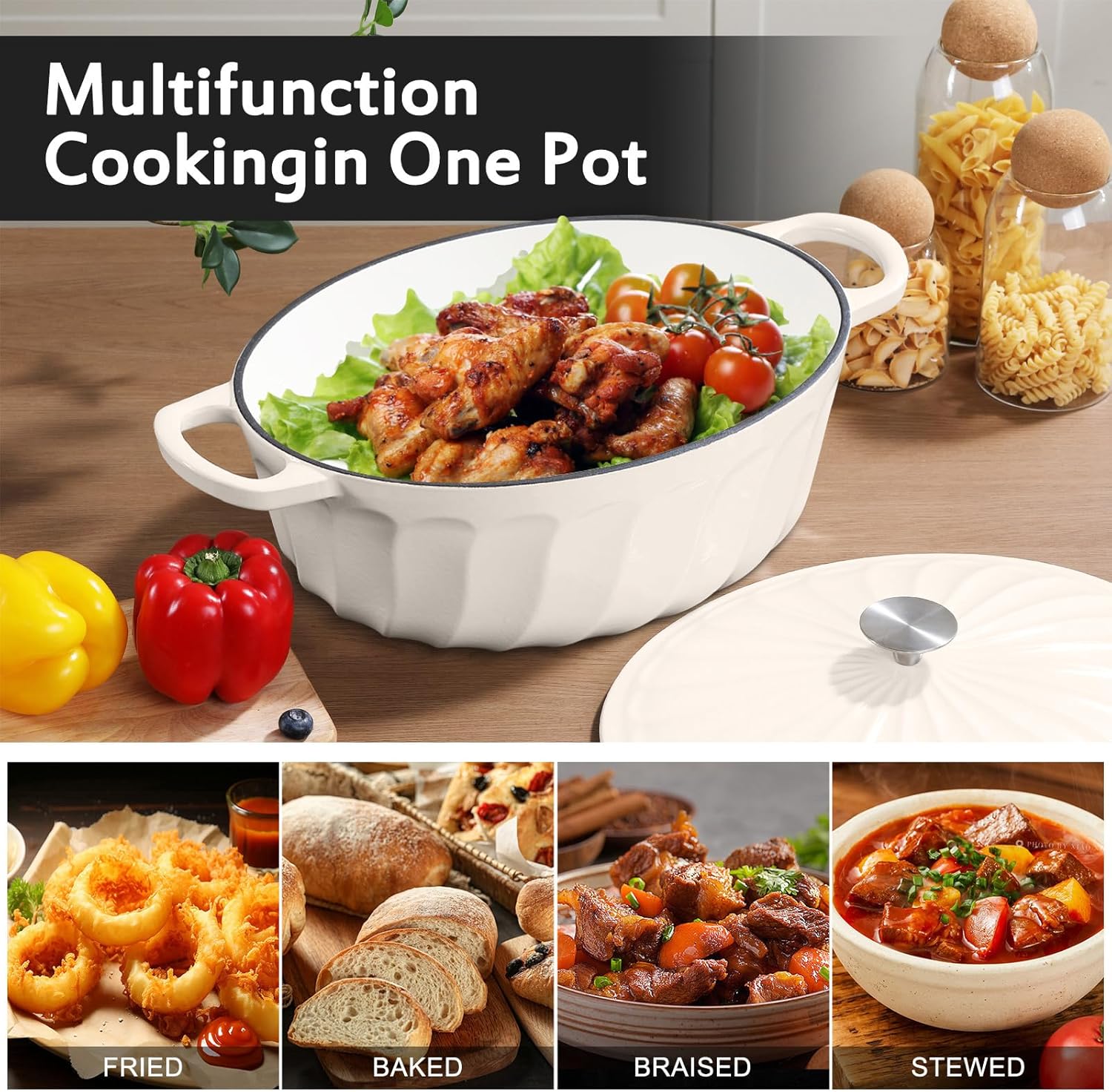 - Multipurpose of One-Pot: This enameled dual handle cast iron pot with lid is compatible with a wide range of cooking surfaces, including gas stoves, electric cooktops, induction cookers, and even ovens. The oval dutch oven cast iron pot with non stick enamel coating is oven safe up to 500°F, allowing you to seamlessly transition from stovetop to oven for recipes that require finishing touches or slow cooking