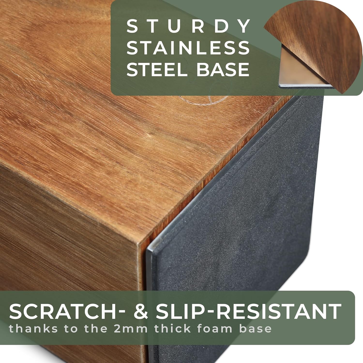- Premium materials - High-quality acacia wood and stainless steel ensure maximum durability. The acacia wood provides a particularly stable and blade-friendly surface for your knives.