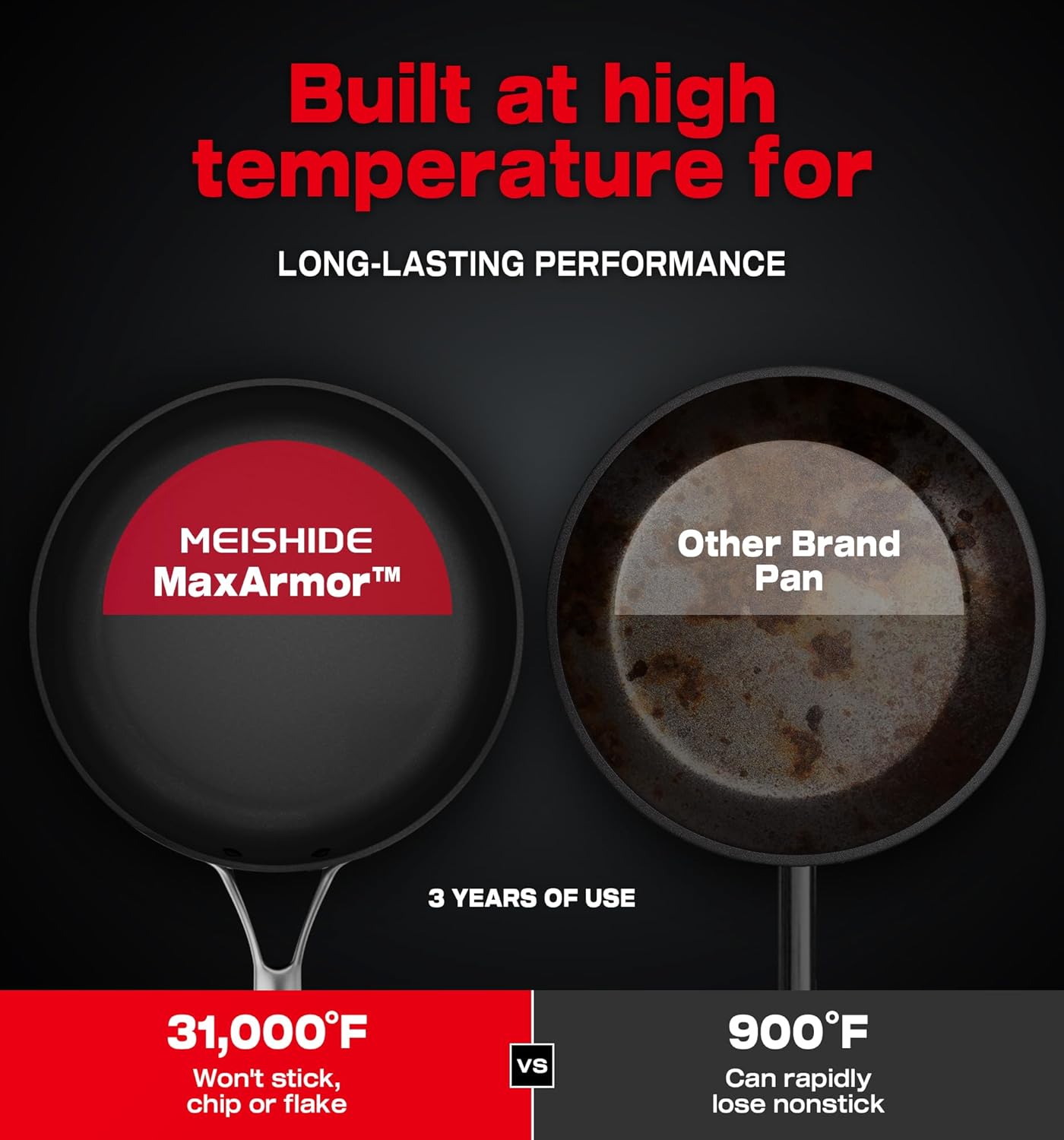 - 100% Non-Toxic & No PFAS/PFOS/PFOA/BPA: Proven Safety - A team led by Dr. Takahashi (with members from the University of Tokyo and California Institute of Technology) has conducted 1,739+ lab tests to ensure zero chemical release even at 500°F, and crafted with our team development MaxArmor nonstick technology coating, healthier cooking with 57.39% less oil. Perfect for eggs, pancakes, or grilled cheese.
