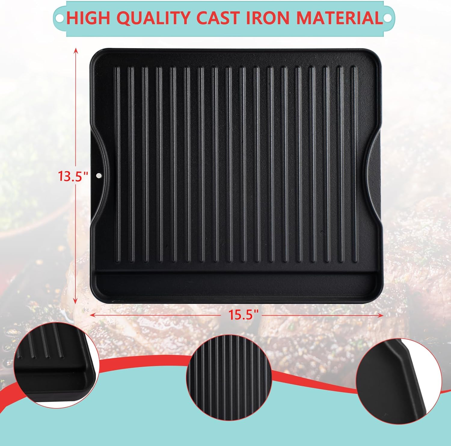 15.5" x 13.5" Reversible Cast Iron Griddle for Camp Chef 2-Burner Stove, Flat Griddle Plate for Camp Chef Single Burner, Explorer 2/3-Burner & Most Outdoor Charcoal,Camping Stove,Propane,Gas Grill