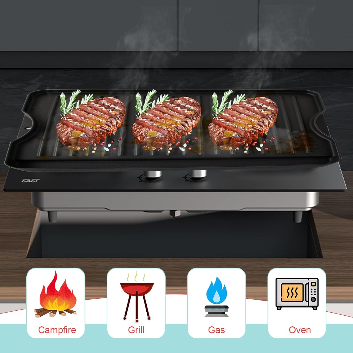 - HANDLE DESIGN: Convenient handle design, helps you easily transfer the griddle from the top of the gas stove to the table, ensuring safety and comfort. Ideal for your outdoor or indoor cooking,Making it perfect for indoor cooking, outdoor grilling and camping