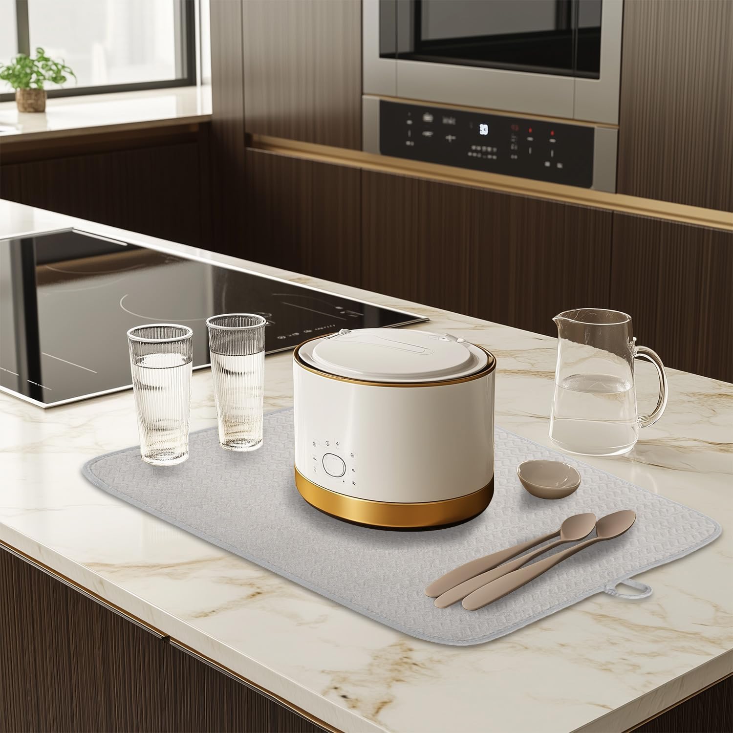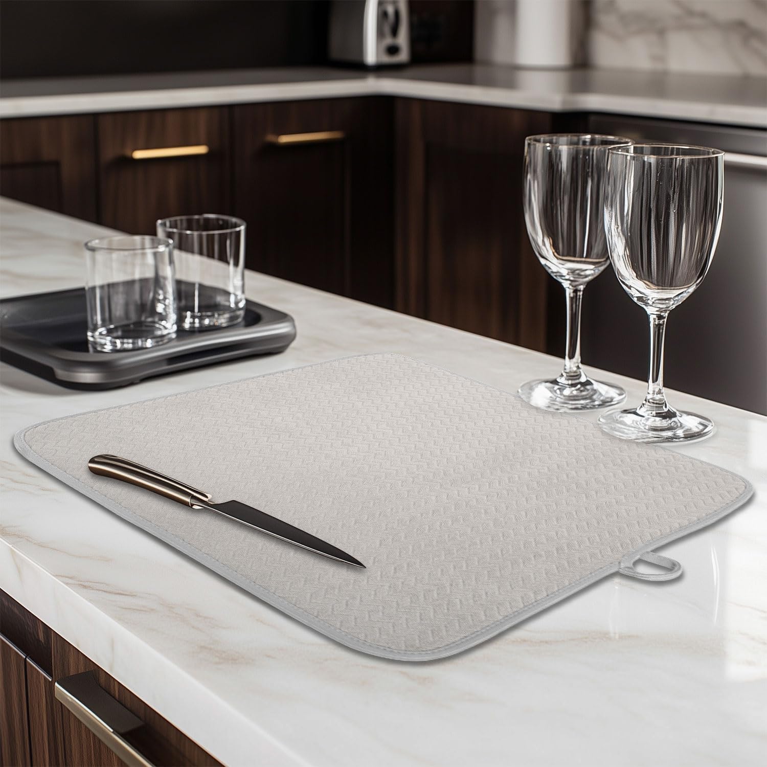 2 Pack Dish Drying Mat, Large 16" x 18" Highly Absorbent Microfiber Kitchen Counter Mat, Dish Drying Pad for Dishes,Perfect Drying Mat for Kitchen Counter, Utensils, Pots and Pans, Grey