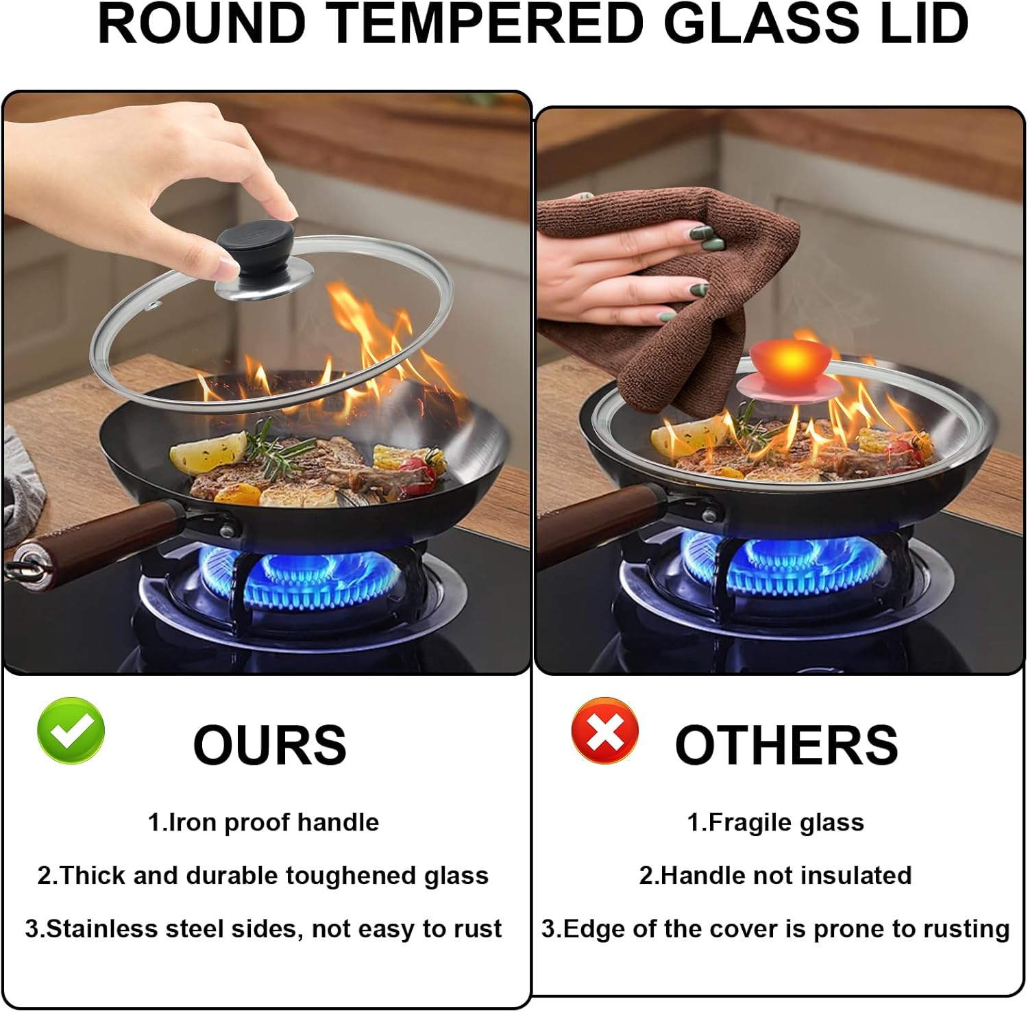- Iron Proof Handle: The skillet's tempered glass lid comes with a heat-resistant, scald-resistant handle that provides a secure and comfortable hold and allows you to easily move the lid during cooking without having to wait for it to cool.