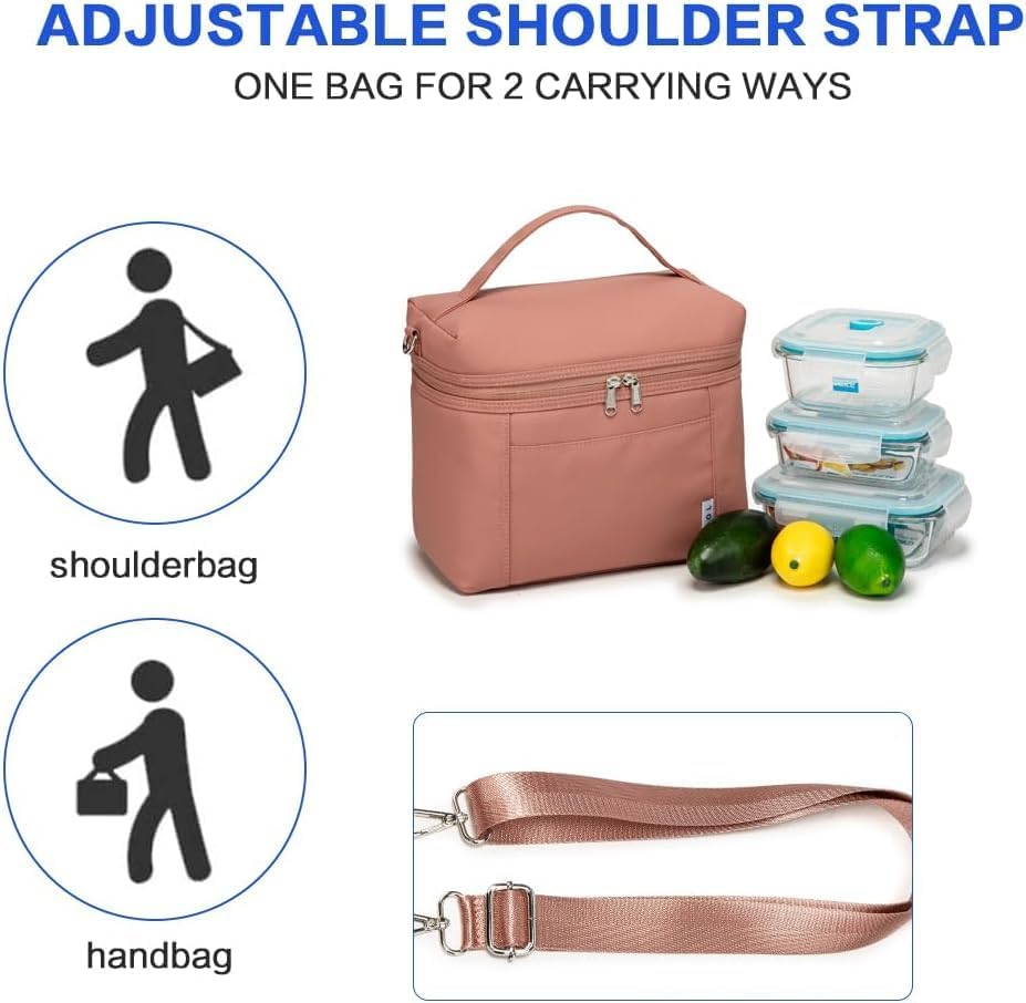 - Portable and cute design: this lunch bag is made of waterproof nylon outside, it’s lightweight and tear resistant; With two ways of carrying- top handle and cross-body by a detachable and adjustable long shoulder strap.