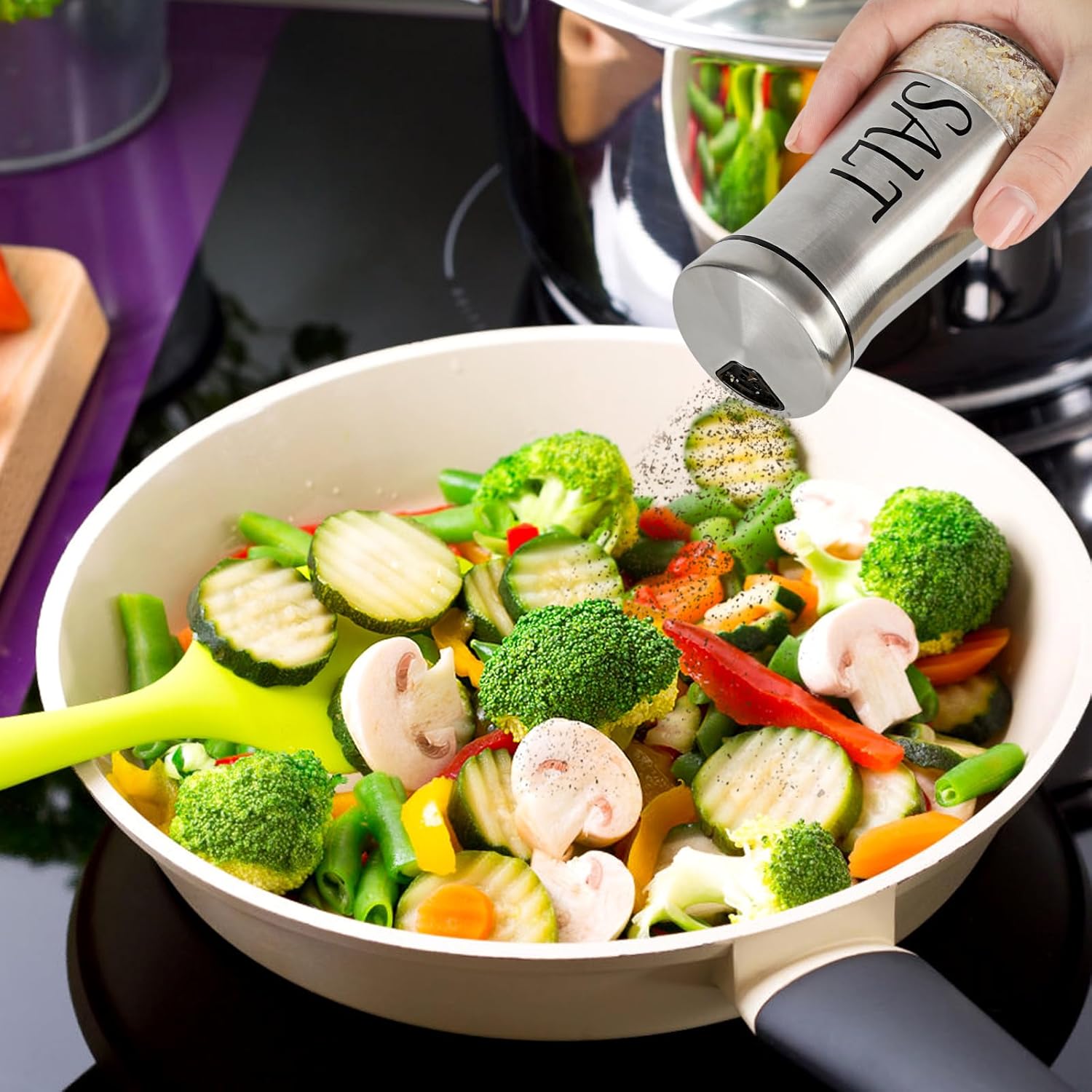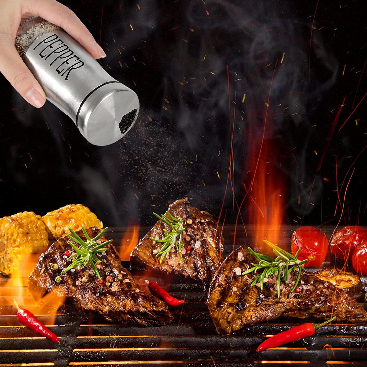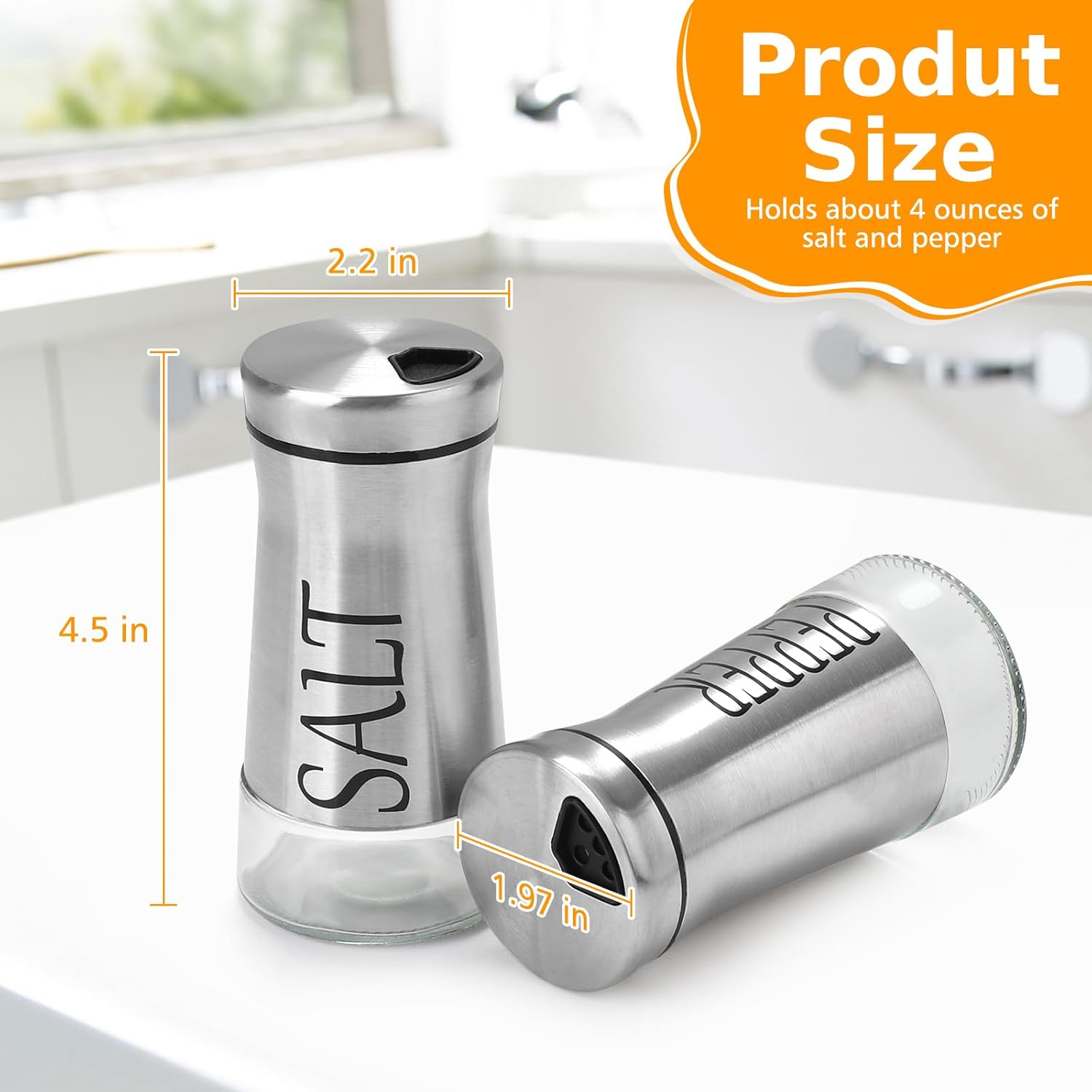 - High-Quality: These salt and pepper shakers are made of lead-free glass and premium stainless steel. Very suitable for storing seasonings such as salt, pepper, cinnamon.