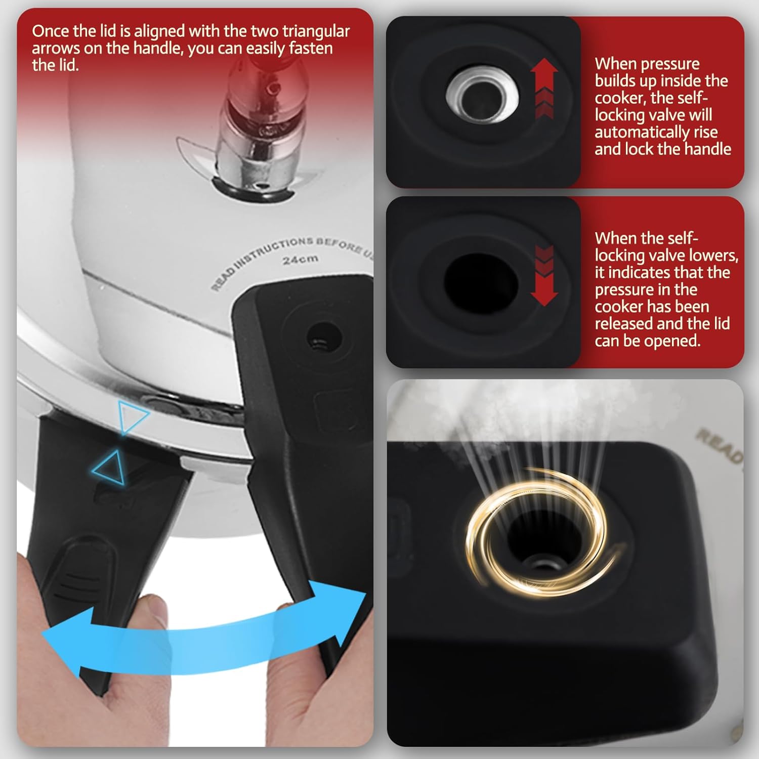 - ✅[Healthy and safe material]-The Deeluban stainless steel pressure cooker is made of high-quality stainless steel, offering excellent corrosion resistance to ensure that no harmful substances are released or react with your food. Preserve the flavor of food in the healthiest way, so you can experience its true, original taste. (Aluminum products may release harmful substances during high-temperature cooking.)