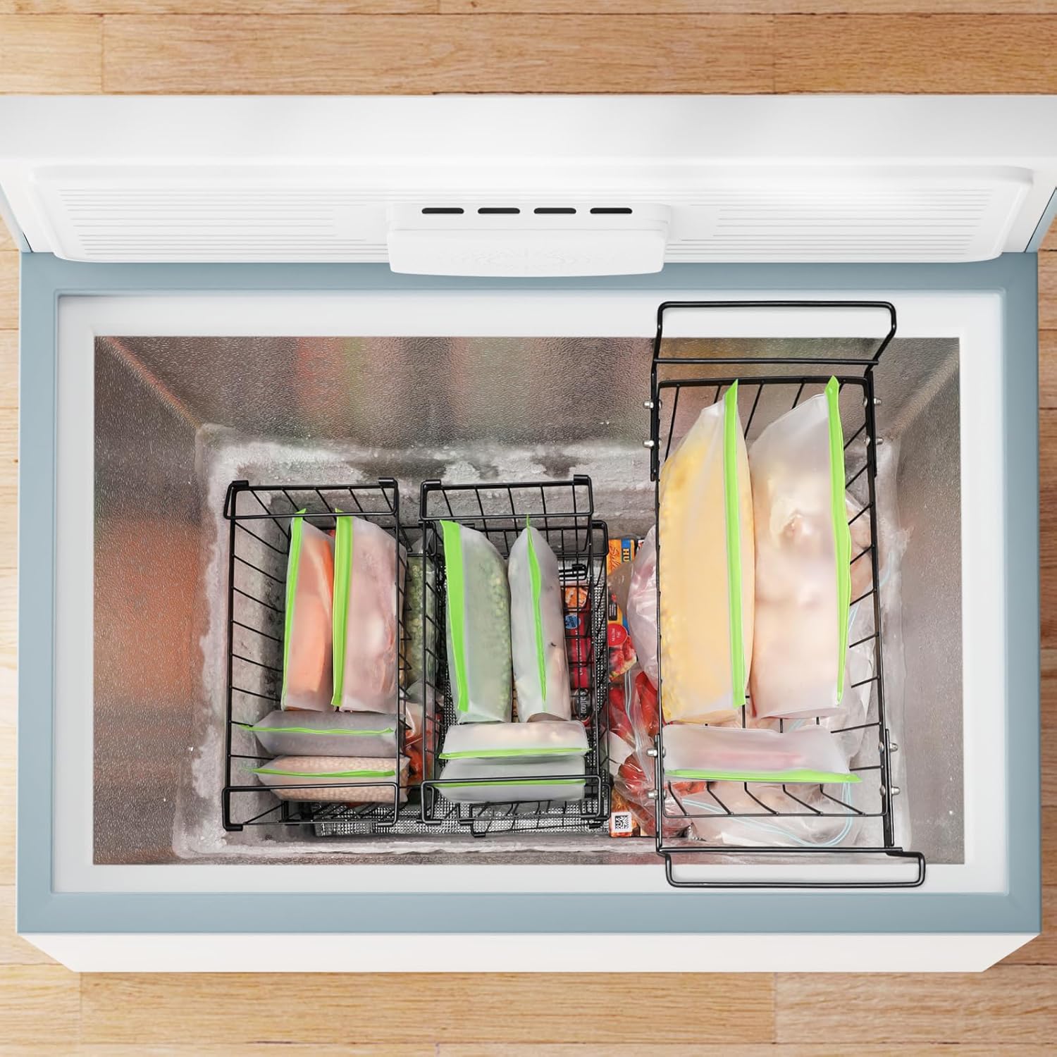 - [Safer and More Economical] Freeze bag made from food-grade PEVA, BPA-free and odorless, keeps food fresh by preventing moisture and liquid penetration. Unlike single-use plastic freezer storage bags, PEVA storage bags are sturdy, washable, and reusable, minimizing environmental impact