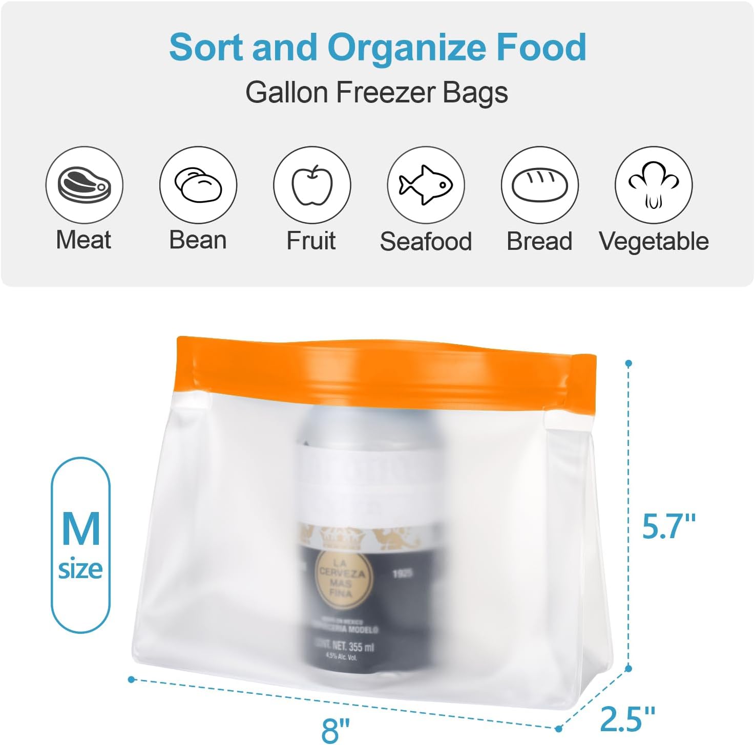 - [Large Capacity Freezer Bags] The size of reusable storage bags is 8.1 x 2.5 x 5.7 inches, 10 pack sandwich bags work well for smaller items like fruits, veggies, and sandwiches. When needed, simply access the bag you want without having to thaw and re-cut, preserving the food's quality