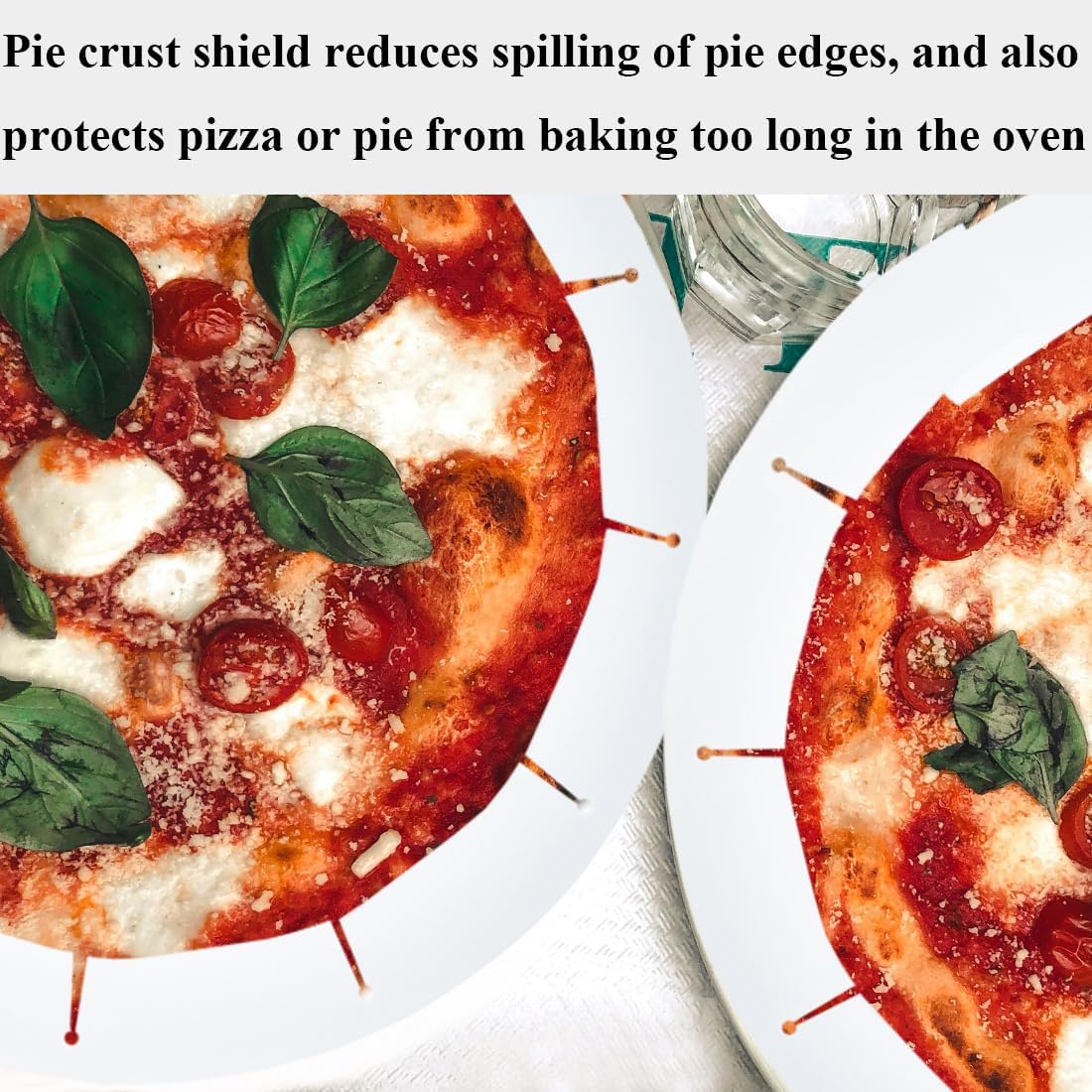 - Cover the Edges of the Pie Crust: Place this silicone heat-resistant pie crust shield on the edges of the pie crust, pizza, and then put it into the oven, which will make the pie crust from burning when baking, and easily create a delicious pie or pizza