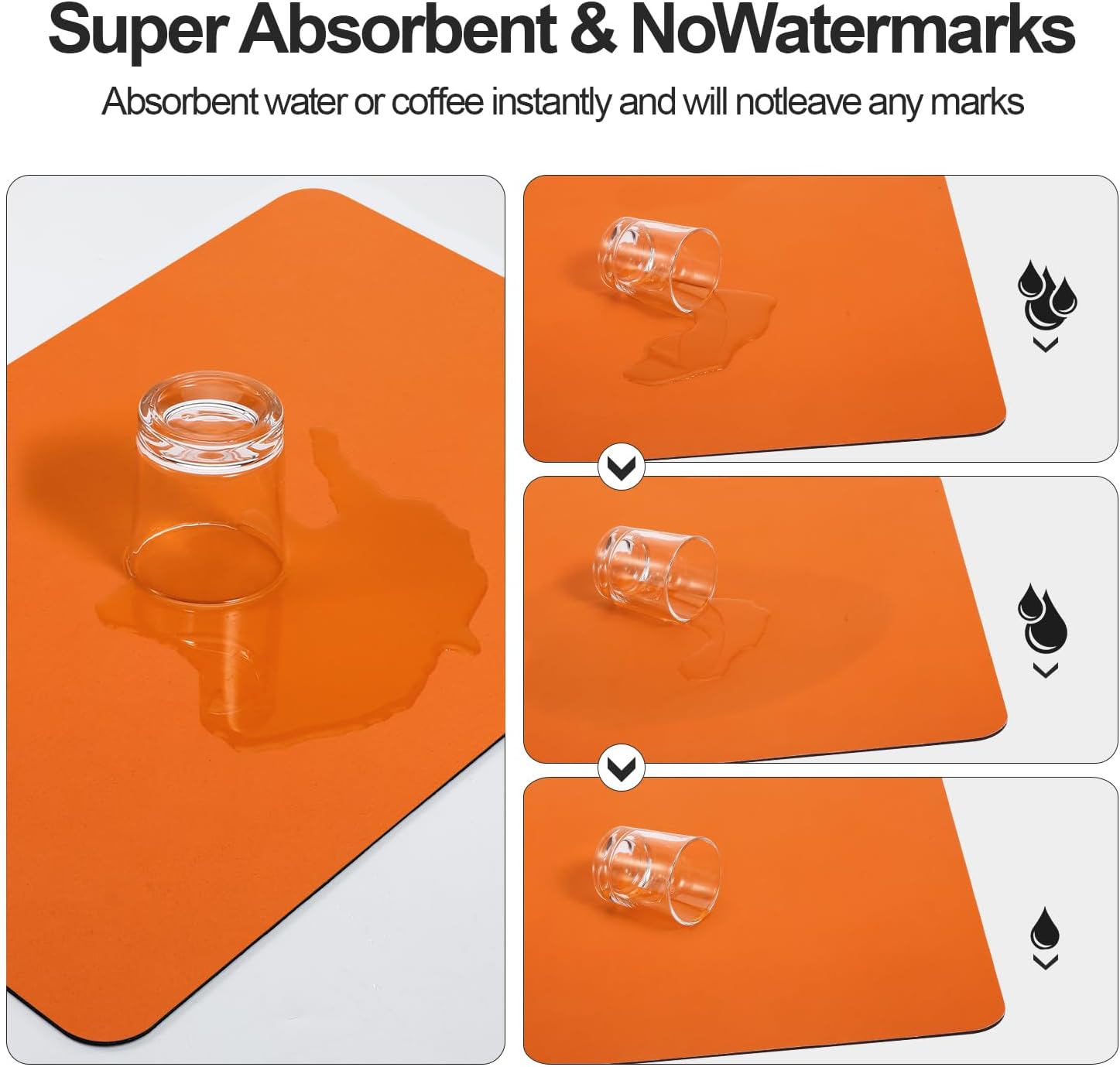 Dish Drying Mat for Kitchen Counter | Coffee Bar Mat for Countertops | Heat Resistant Drainer Mat with Non-slip Rubber Backed | Hide Stain Kitchen Absorbent Draining Mat | Orange 16"x20"