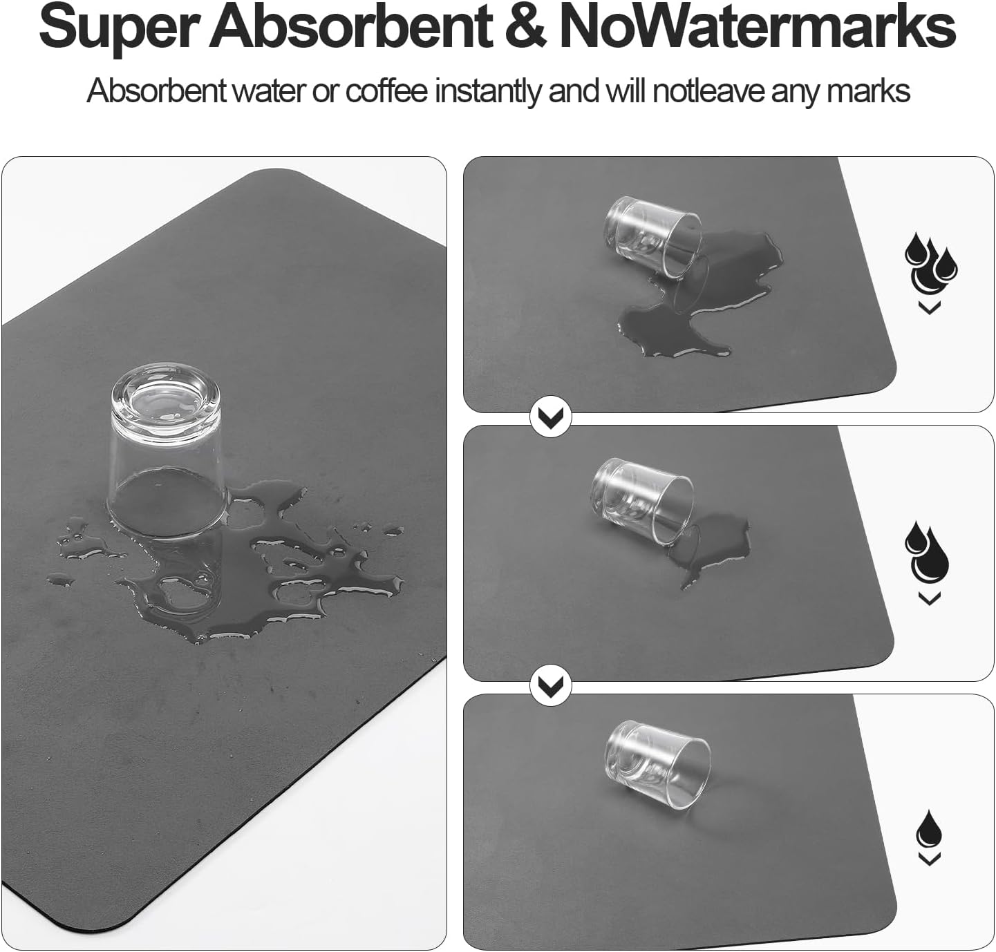 - 【Fast Drying】 The coffee mat features highly absorbent nano-material, allowing it to air-dry within seconds and keeping your countertop neat at all times.