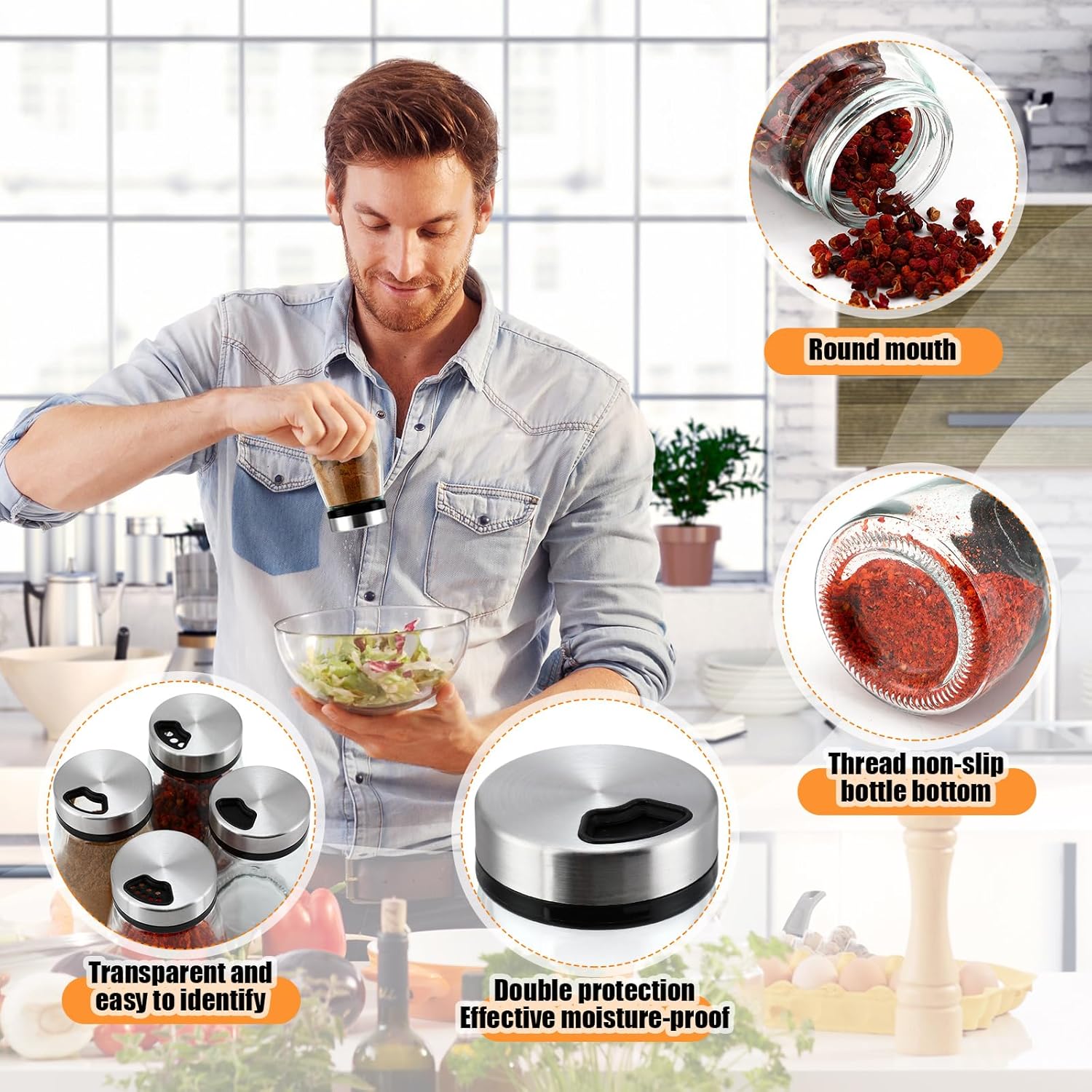 - Sturdy for Long Time Use: this salt or pepper shaker set is made of glass, which is sturdy, durable, safe, odorless and not easy to deform or fade, suitable for your long term use; Please note that if there is water on the product, please wipe it with a dry cloth, keeping the spice bottles dry can prevent the seasoning from getting damp and clumping