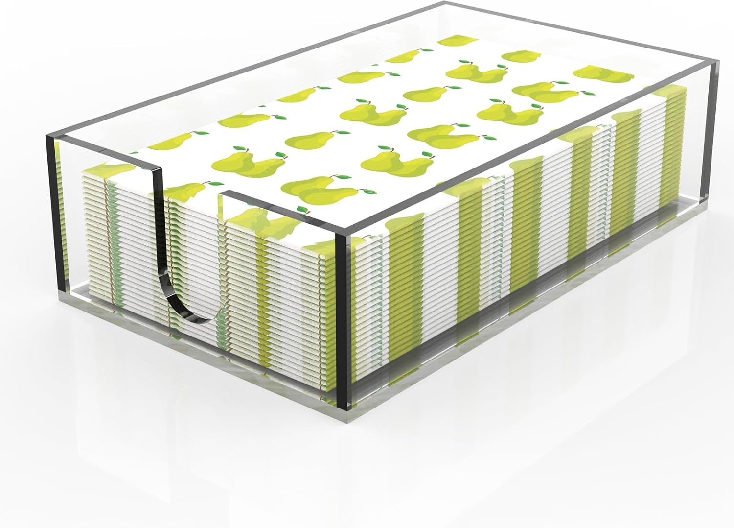 - Simple modern design: This clear napkin holder features crystal clear colors that match any decor, making the flat caddy a stylish storage space for your dining table, buffet, bar, or bathroom countertop.