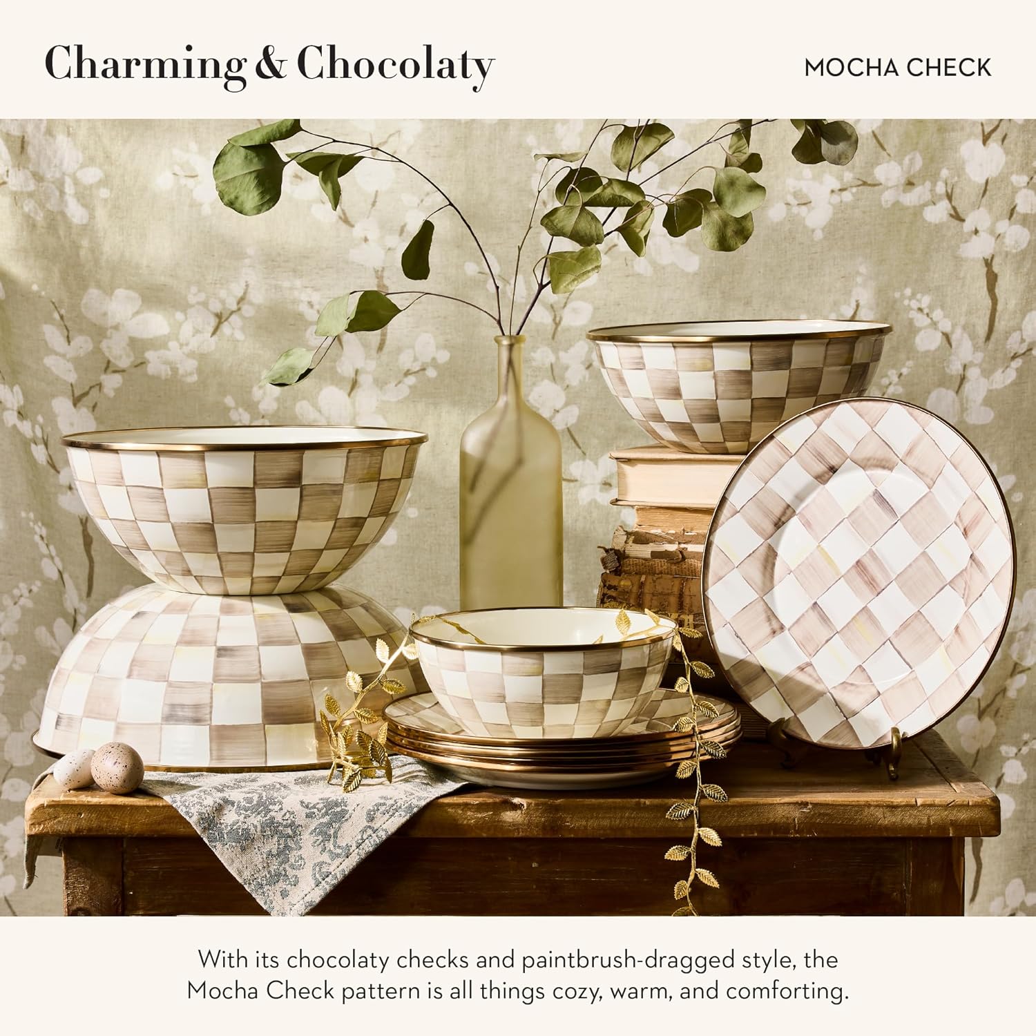 MACKENZIE-CHILDS Enamel Everyday Bowl, Serving Bowl for Entertaining, Small, Brown-and-White Mocha Check