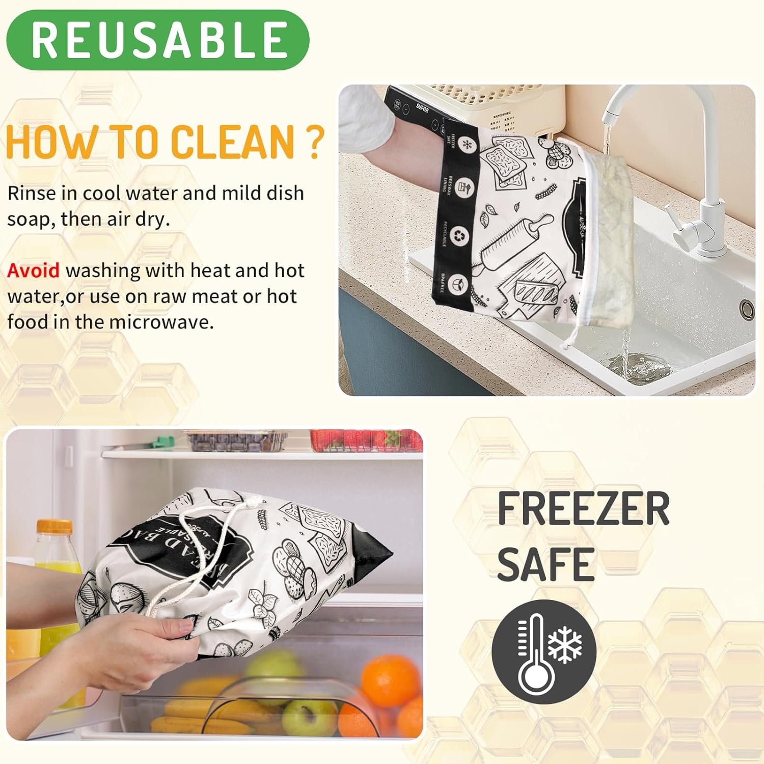 - 🌏 ECO-FRIENDLY & REUSABLE : Let's use these eco-friendly & reusable bread bags ,Reduce throwaway plastic consumption and start a green lifestyle.