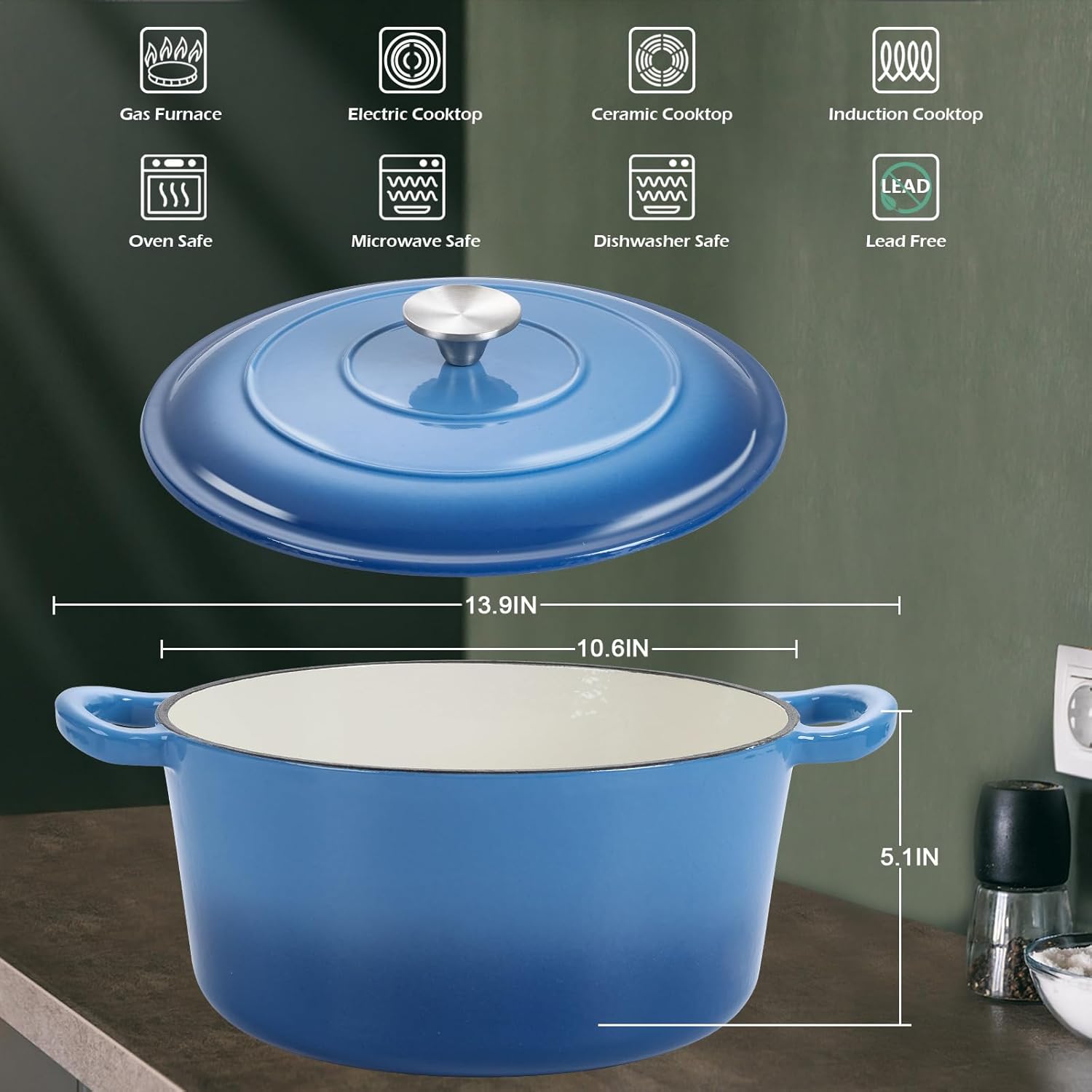 - Versatile Kitchen Essential,the 6 quart Dutch oven capacity serves 4-6 people, from simmering soups to baking bread and making one-pot meals, meets all the needs of daily stewing. It transitions effortlessly from stovetop to oven, making meal prep a breeze, suitable for gas, electric, ceramic, induction stovetops